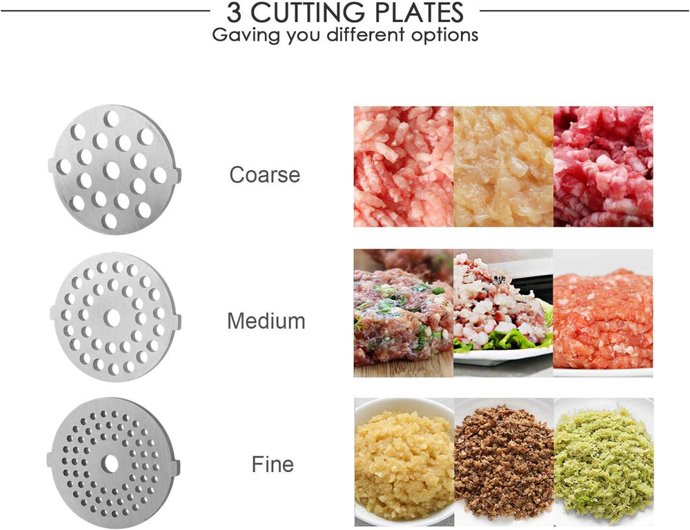 - Multifunktion: Erstellen Sie Ihre eigenen frischen Gourmet-Burger, Fleischbällchen, Würstchen usw. Auch zum Mahlen von Gemüse, Knoblauch, Obst usw. können Sie d.i.y Snacks zu Hause zubereiten