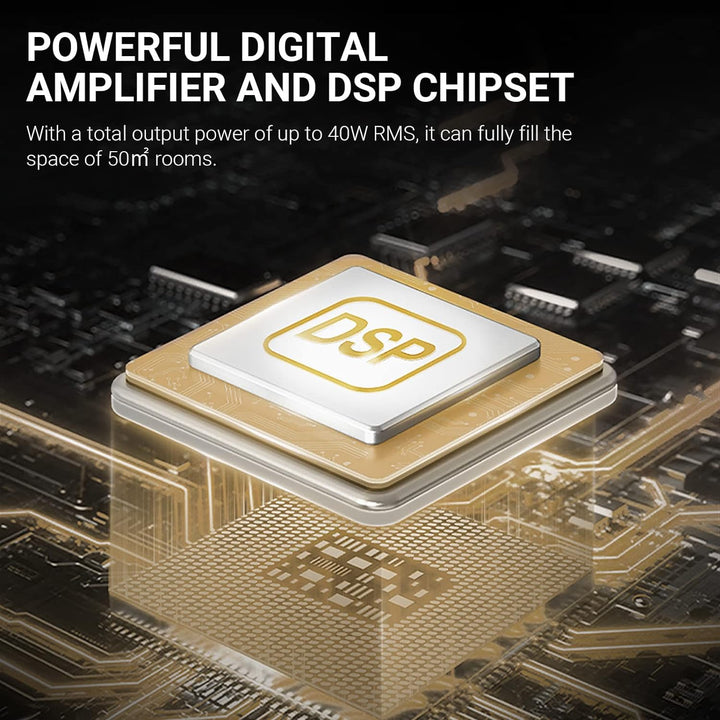 - KRAFTVOLL 40W RMS Ausgangsleistung für knackigen Sound; rückseitige Bassreflexöffnungen