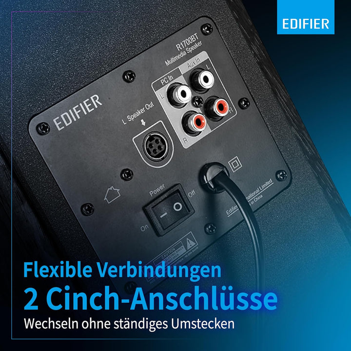 - AKTIVLAUTSPRECHER: mit 2 separaten Audioeingängen (RCA), Bluetooth und Reglern für Lautstärke, Bassleistung und Höhen.