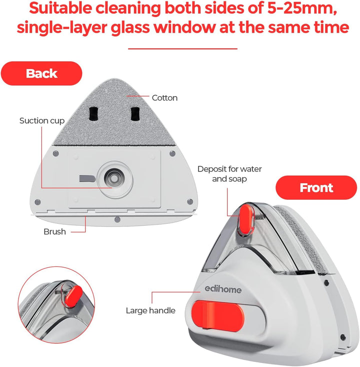 - PROFESSIONELLER FENSTERREINIGER: Der für alle Fenstertypen einstellbare edihome-Fensterreiniger ist von hoher Qualität und für die Reinigung von Climalit- oder doppelschichtigem Glas mit einer Stärke von 5-25 mm konzipiert. Dank seiner starken