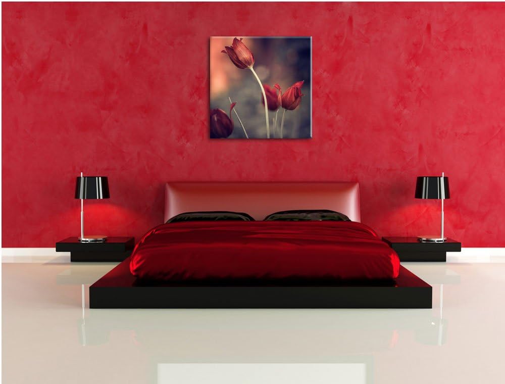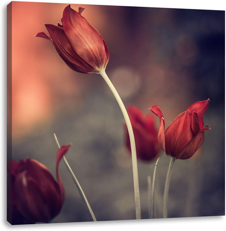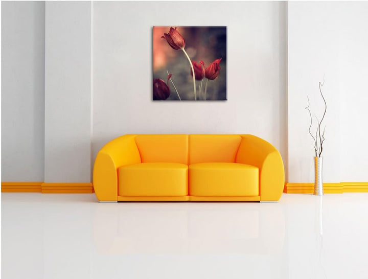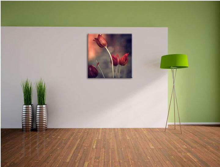 Edle Tulpen im Abendlicht, Format: 70x70 auf Leinwand, XXL riesige Bilder fertig gerahmt mit Keilrah