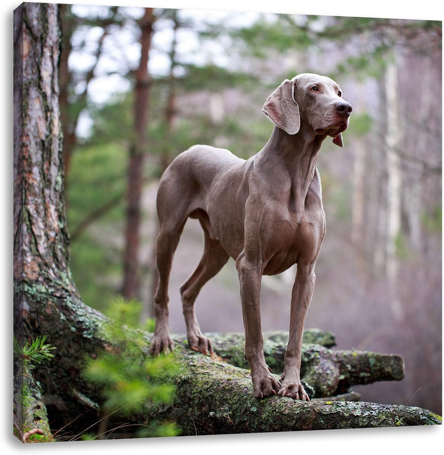 Edler Weimaraner im Wald, Format: 70x70 auf Leinwand, XXL riesige Bilder fertig gerahmt mit Keilrahm
