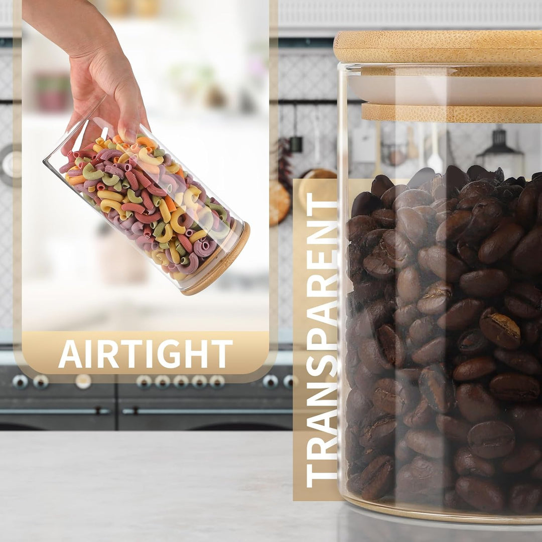 - 【Wiederverwendbarkeit】: Unsere Glaskrüge mit Bambusdeckel sind eine nachhaltige und wiederverwendbare Alternative zu Plastikverpackungen. Beachte, dass Vorratsgläser aus Glas zerbrechlich sind und mit Vorsicht platziert werden sollten.