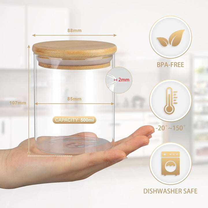 - 【Wiederverwendbarkeit】: Unsere Glaskrüge mit Bambusdeckel sind eine nachhaltige und wiederverwendbare Alternative zu Plastikverpackungen. Beachte, dass Vorratsgläser aus Glas zerbrechlich sind und mit Vorsicht platziert werden sollten.