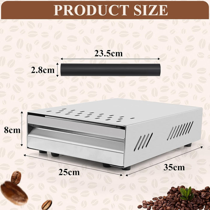 - ✅【𝐒𝐚𝐮𝐛𝐞𝐫 𝐮𝐧𝐝 𝐏𝐫𝐚𝐤𝐭𝐢𝐬𝐜𝐡】Unsere Espresso Knock Box Schublade bietet Ihnen eine saubere und bequeme Lösung zur Entsorgung von Kaffeerückständen. Ziehen Sie einfach die Schublade heraus und