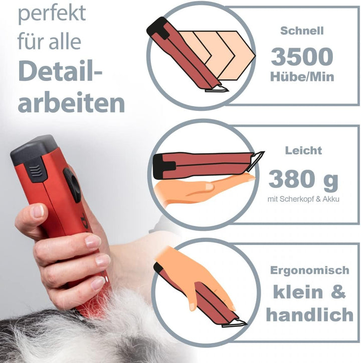 - ⚖️ BEQUEMES ARBEITEN: Dank des ergonomisch geformten Griffbereichs und einem Gewicht von nur 380 Gramm ermöglicht unsere Schermaschine für Hunde ein langes und ermüdungsfreies Arbeiten. Ideal für Profis!