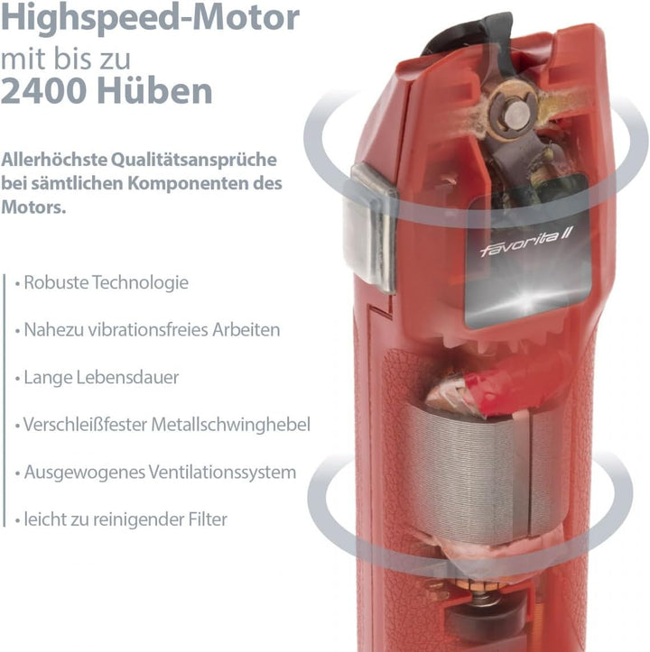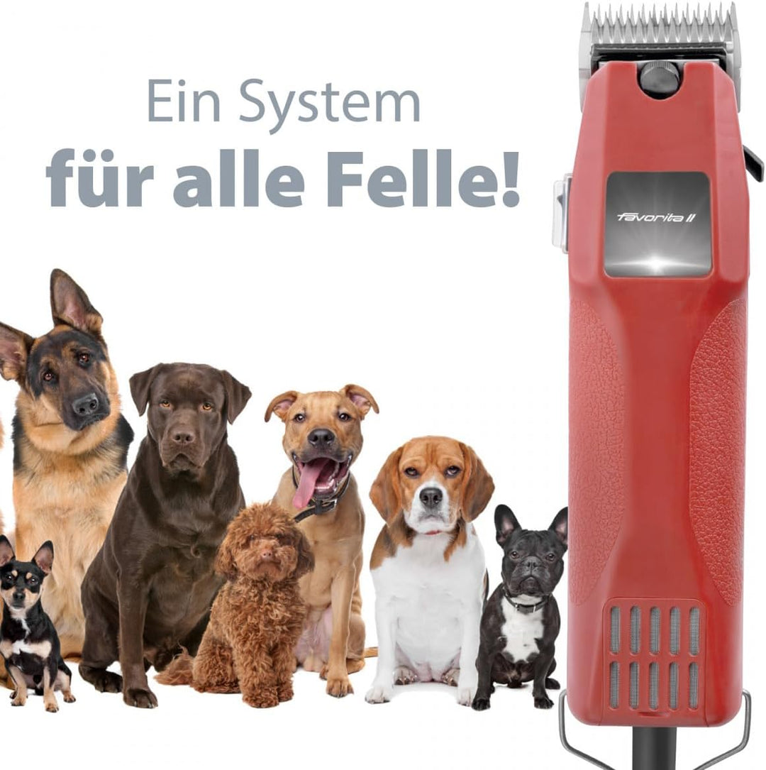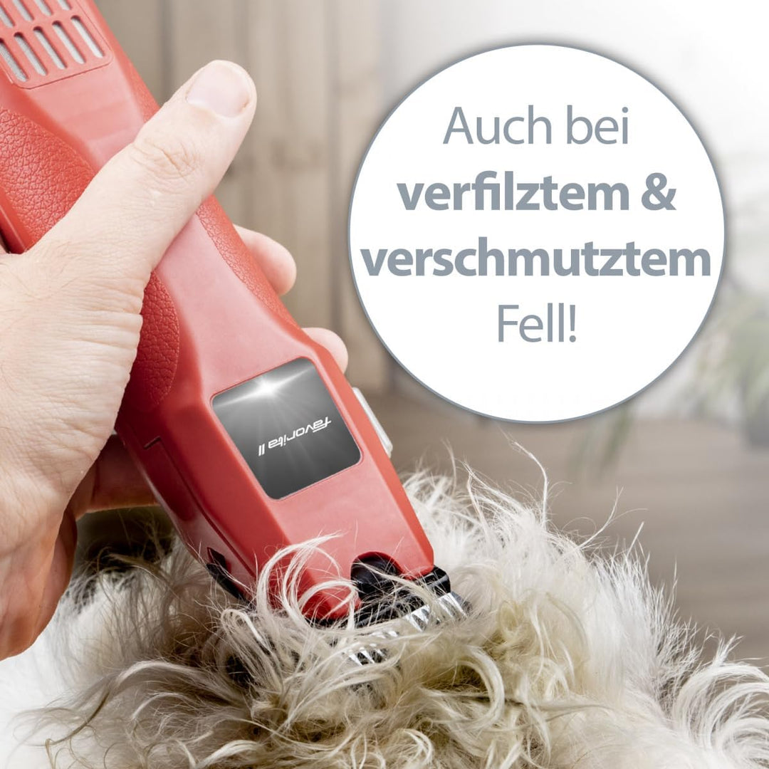 - Der Lieferumfang beträgt 1 Favorita II Schermaschine (GT104) mit 1 Scherkopf bis 5mm, 1 Aesculap Öl (GT604), 1 Gebrauchsanweisung und 1 stabiler Hartschalenkoffer.