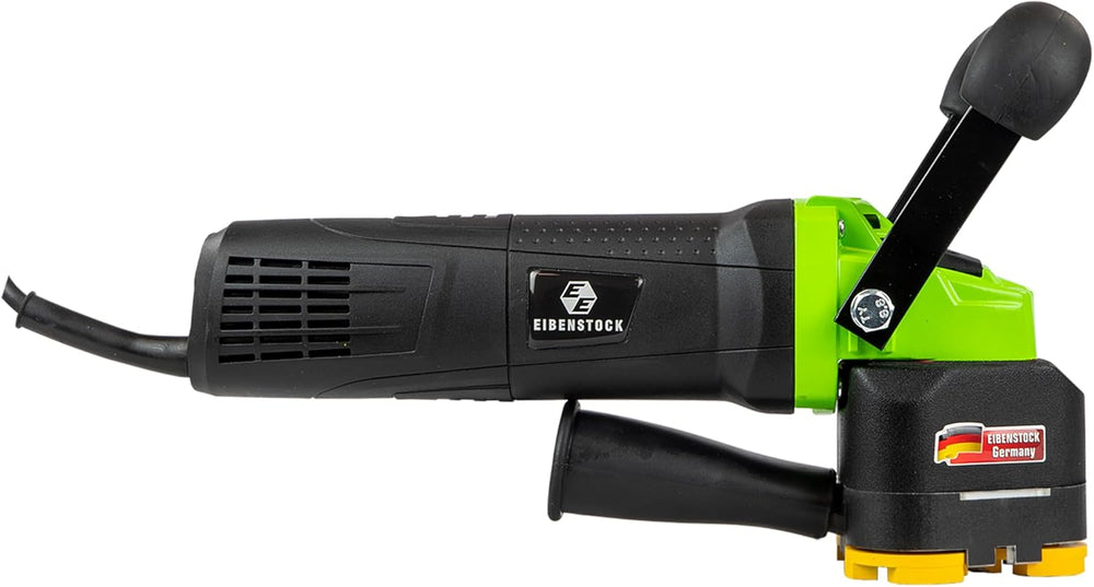 PRODUKTBESCHREIBUNGEN Eibenstock EES 1400-3 Eckenschleifer (inkl. 3 Schleifteller Beton) Artikel Nr.: 0620V000 Anwendung: - Schleifen in Ecken, Winkeln und kleinen Flächen z.B. Fensterlaibungen, Nischen, unter Heizkörpern - Ideal für Treppen- und Fliesensanierungen - Schleifen bis direkt an die Kante (bei entferntem Bürstenkranz) - Beton, Estrich, Fliesenkleber, Putze, Farbe, Beschichtungen, Teppichkleber - entsprechend abgestimmte Schleifteller Merkmale: - Elektronik - Sanftanlauf, Drehzahlregelung und -konstanthaltung - Bürstenkranz abnehmbar - Schleifarbeiten bis an die Kante der Bearbeitungsfläche - Bürstenkranz - hohe Absaugleistung für staubarmes Arbeiten bei Anschluss eines Industriestaubsaugers (Zubehör) am 35 mm Stutzen Technische Daten Leistungsaufnahme: 1.400 W Nennspannung: 230 V Nenndrehzahl: 4.500 - 13.000 U/min Werkzeugaufnahme: Spezial Scheibendurchmesser: 3x 44 mm Gewicht: 3,3 kg