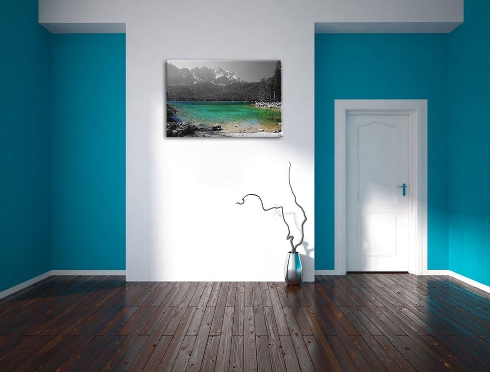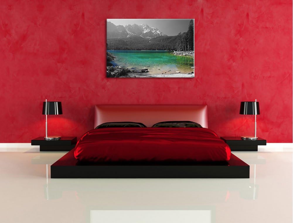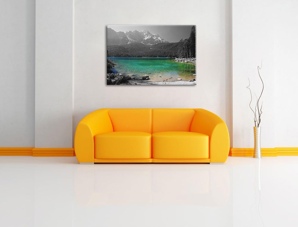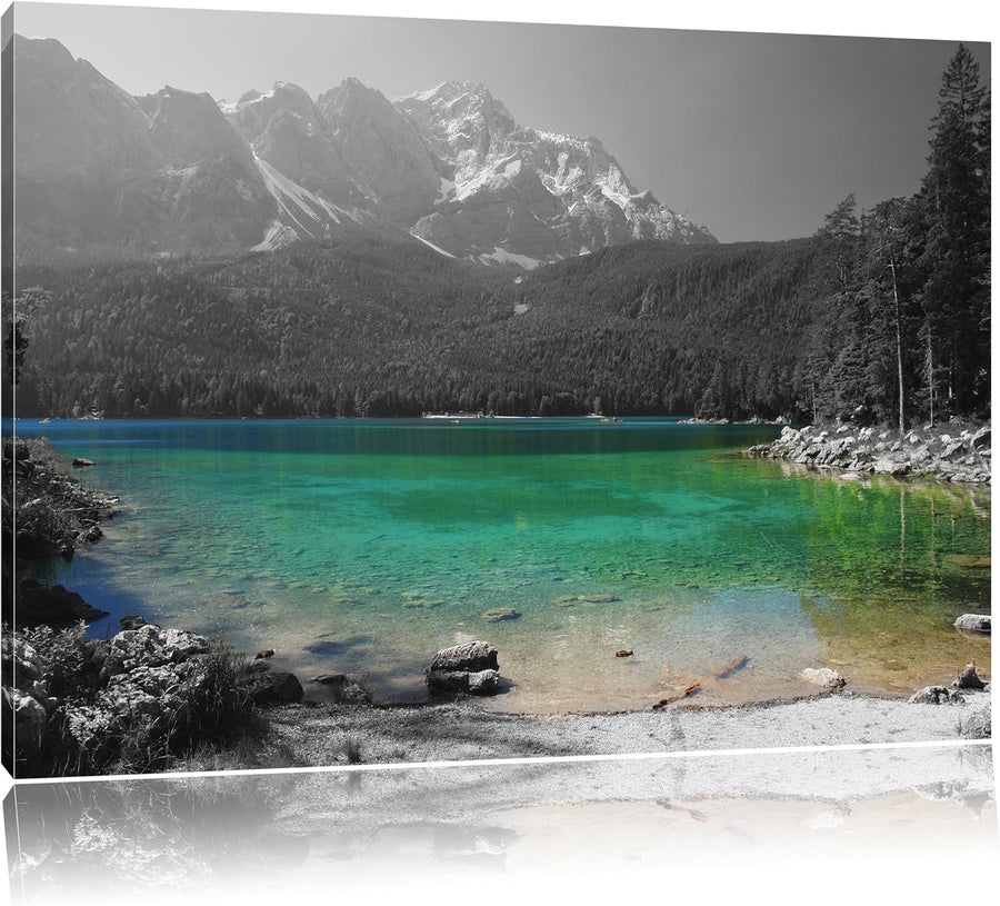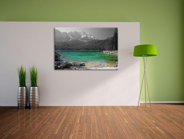 Eibsee vor der Zugspitze schwarz/weiss Format: 100x70 auf Leinwand, XXL riesige Bilder fertig gerahm