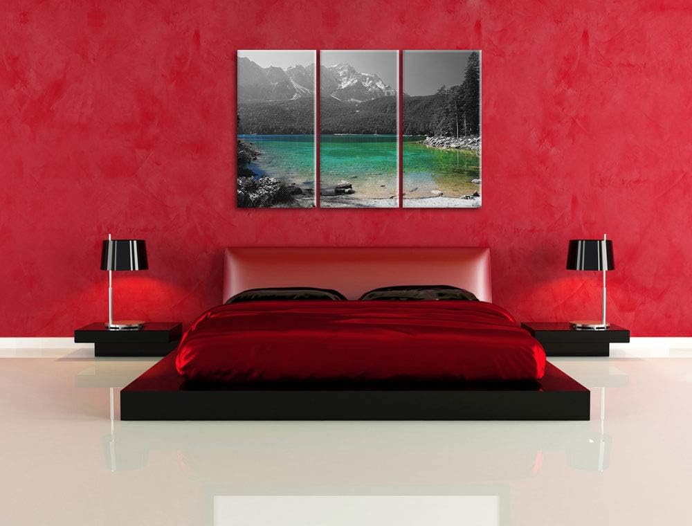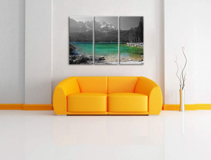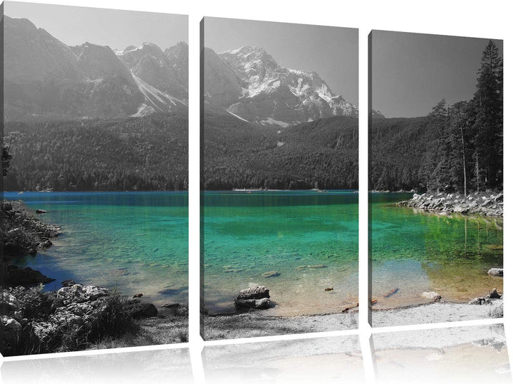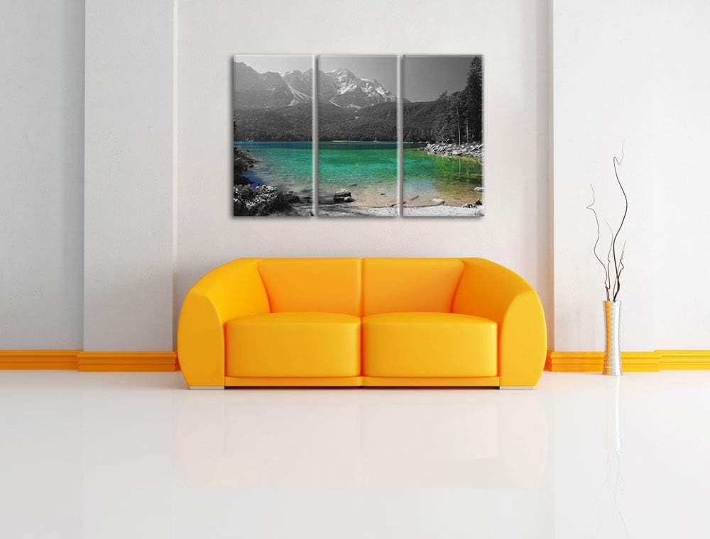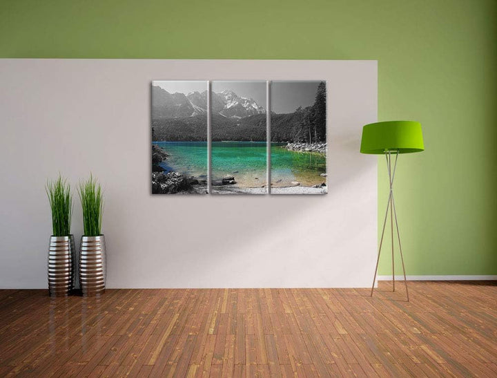 Eibsee vor der Zugspitze schwarz/weiss 3-Teiler Leinwandbild 120x80 Bild auf Leinwand, XXL riesige B