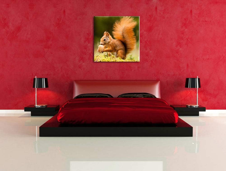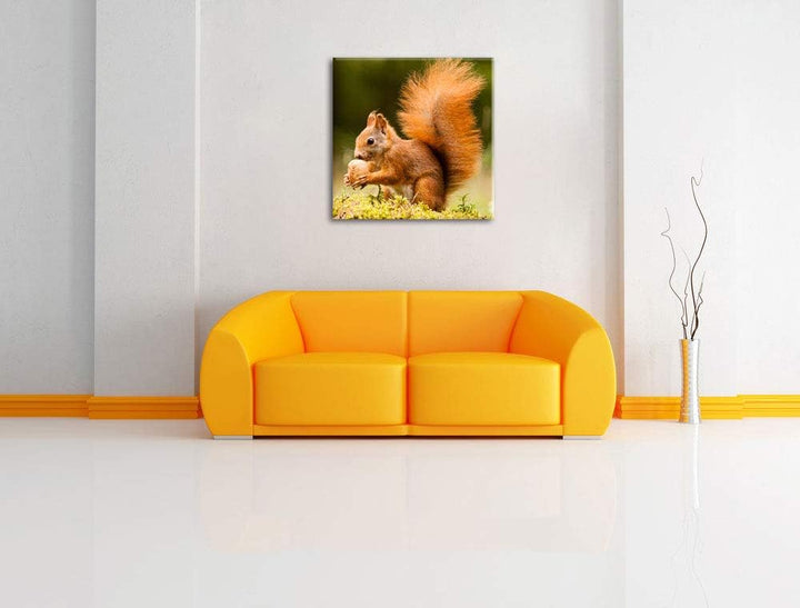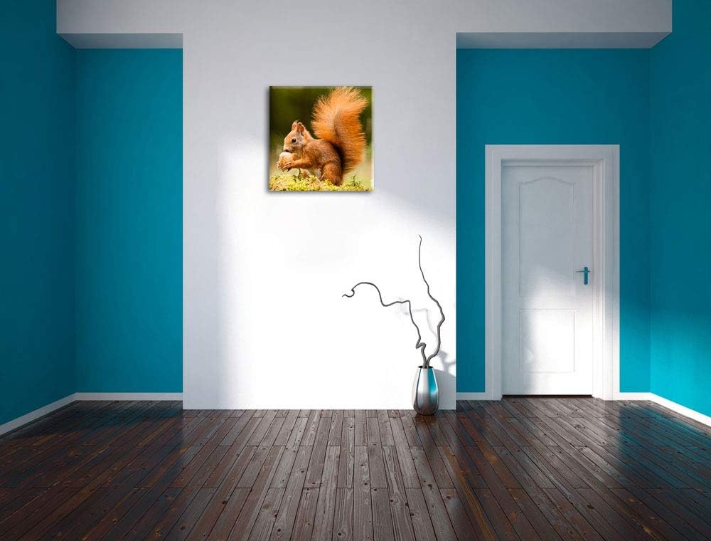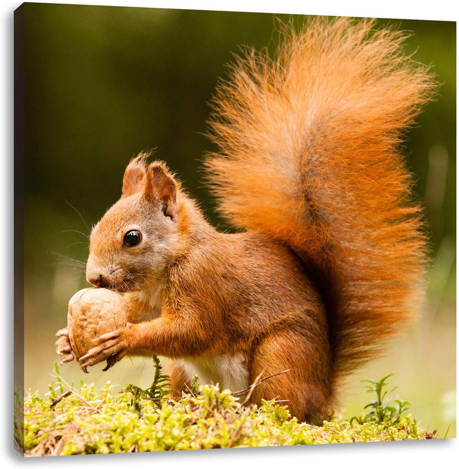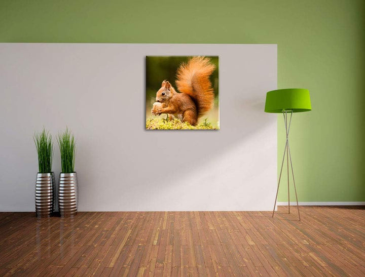 Eichhörnchen mit Nuss, Format: 70x70 auf Leinwand, XXL riesige Bilder fertig gerahmt mit Keilrahmen,