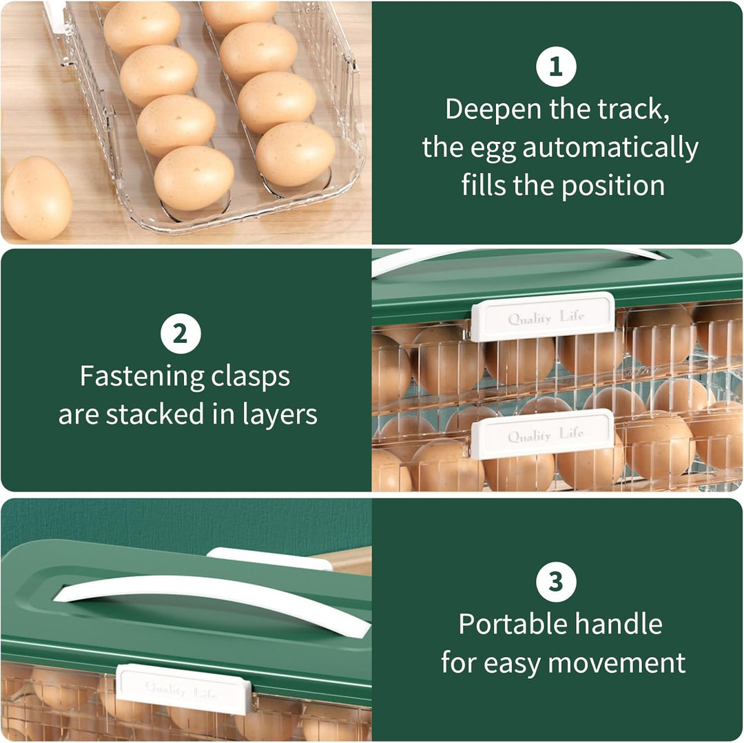 - 【Automatisch Rollendes Design Eieraufbewahrung】Eier aufbewahrung eierhalter kühlschrank verfügt über eine praktische Konstruktion mit Schwerkraftzufuhr. Aus einer geneigten Bahn wird jeweils ein Ei freigesetzt. Wenn Sie die Eier aus dem doppelter