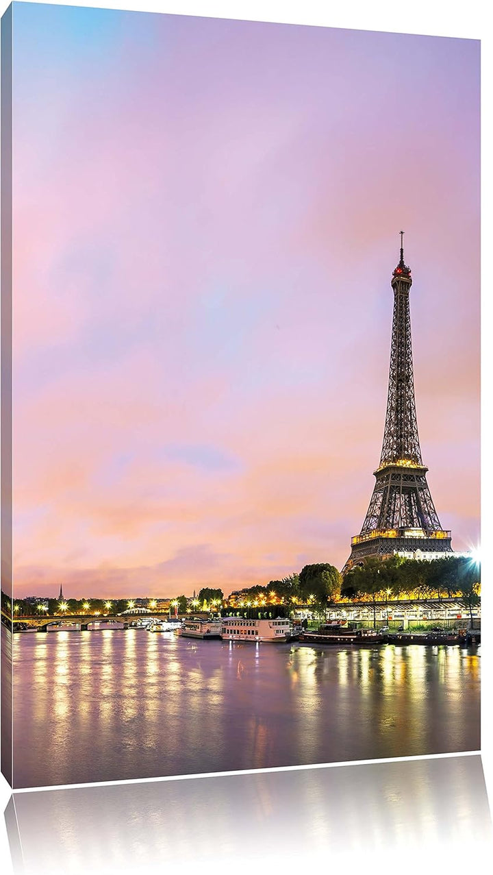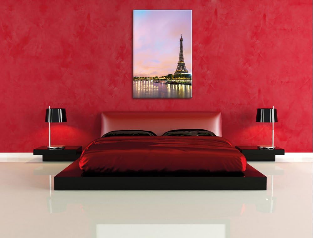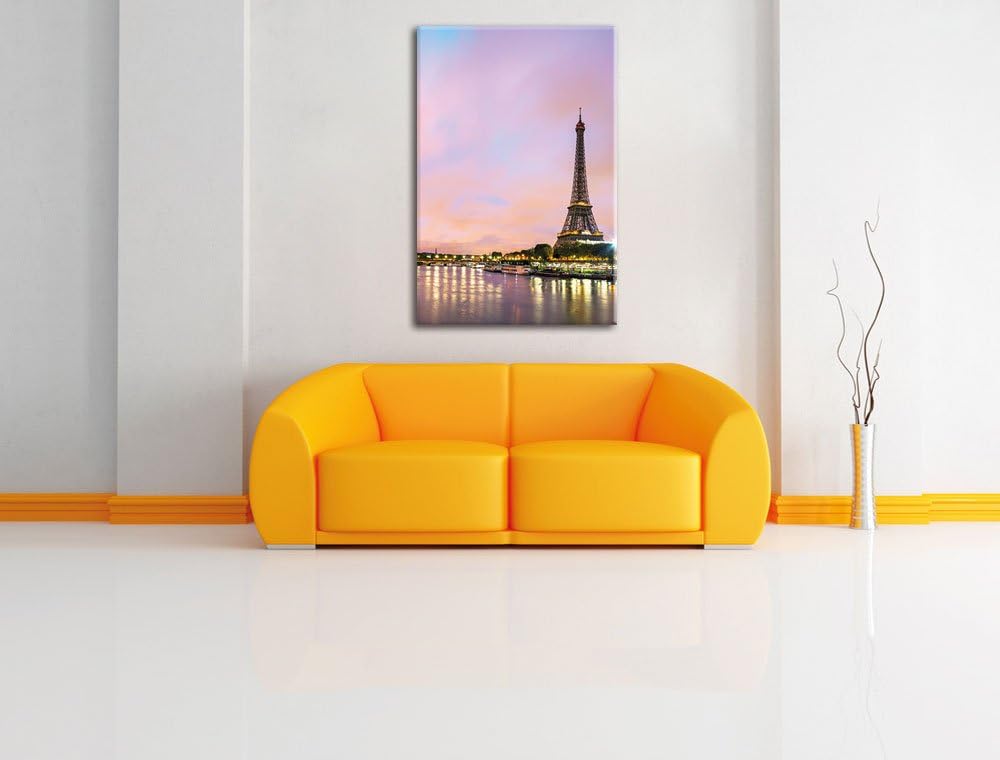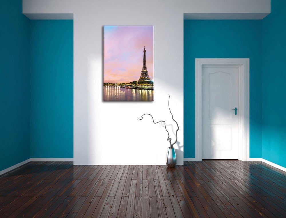 Eifelturm Paris bei Nacht, Format: 100x70 auf Leinwand, XXL riesige Bilder fertig gerahmt mit Keilra
