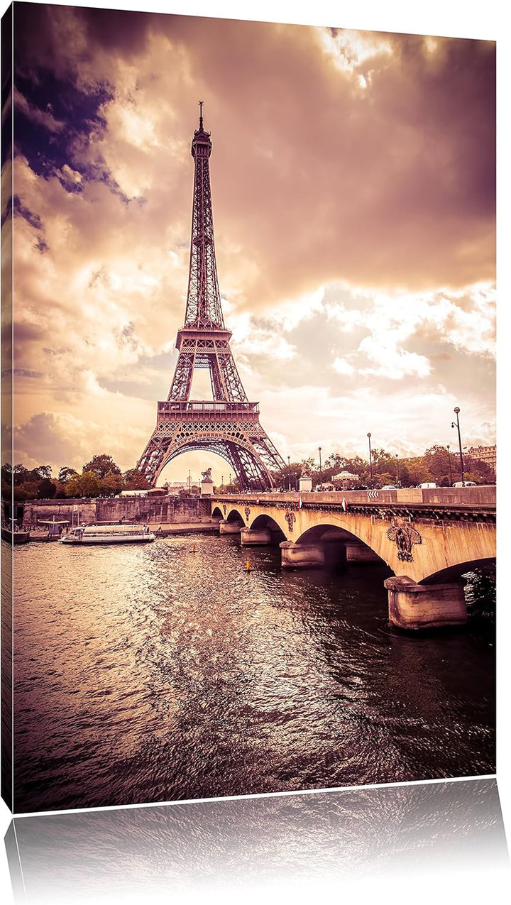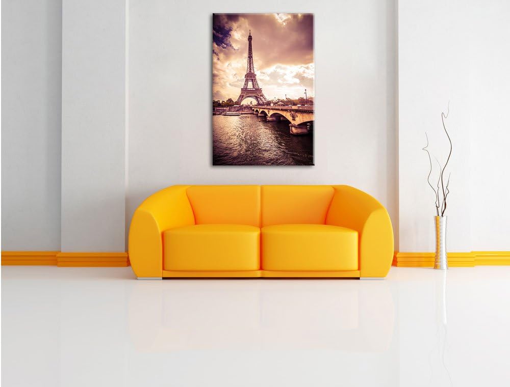 Eiffelturm in Paris, Format: 100x70 auf Leinwand, XXL riesige Bilder fertig gerahmt mit Keilrahmen,