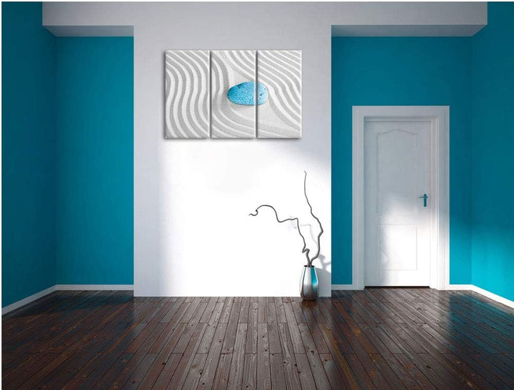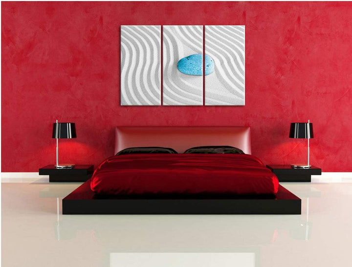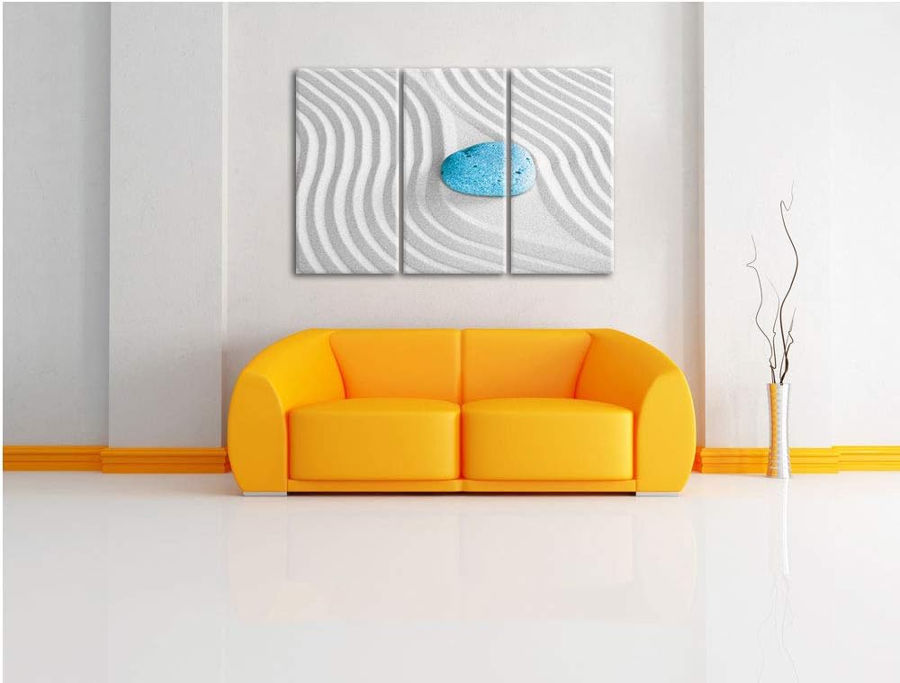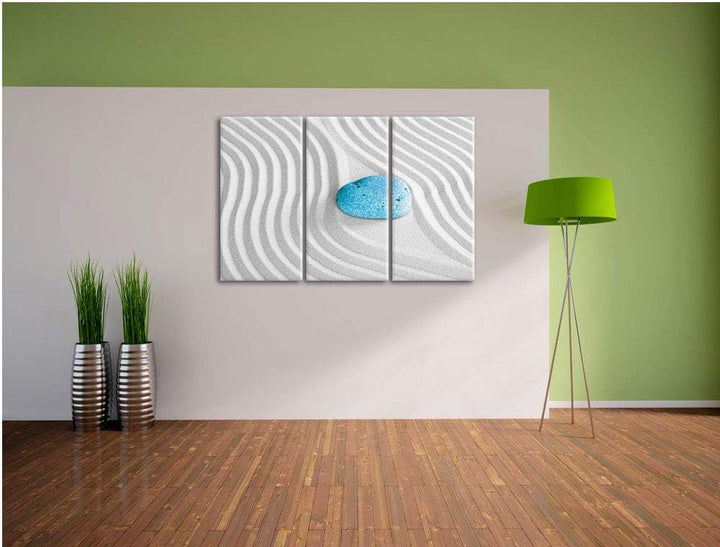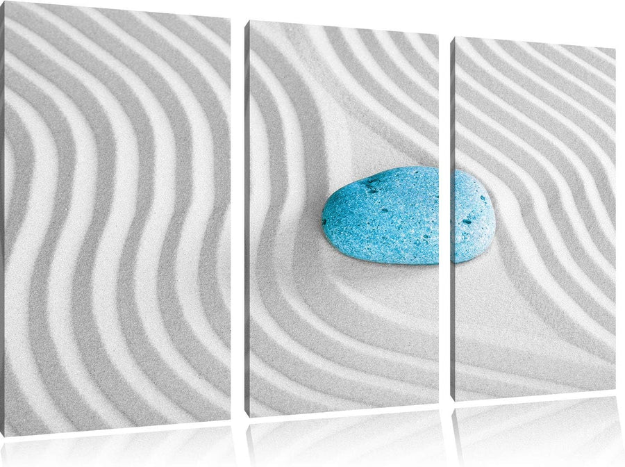 Ein Stein im Sand mit Wellenmuster schwarz/weiss 3-Teiler Leinwandbild 120x80 Bild auf Leinwand, XXL