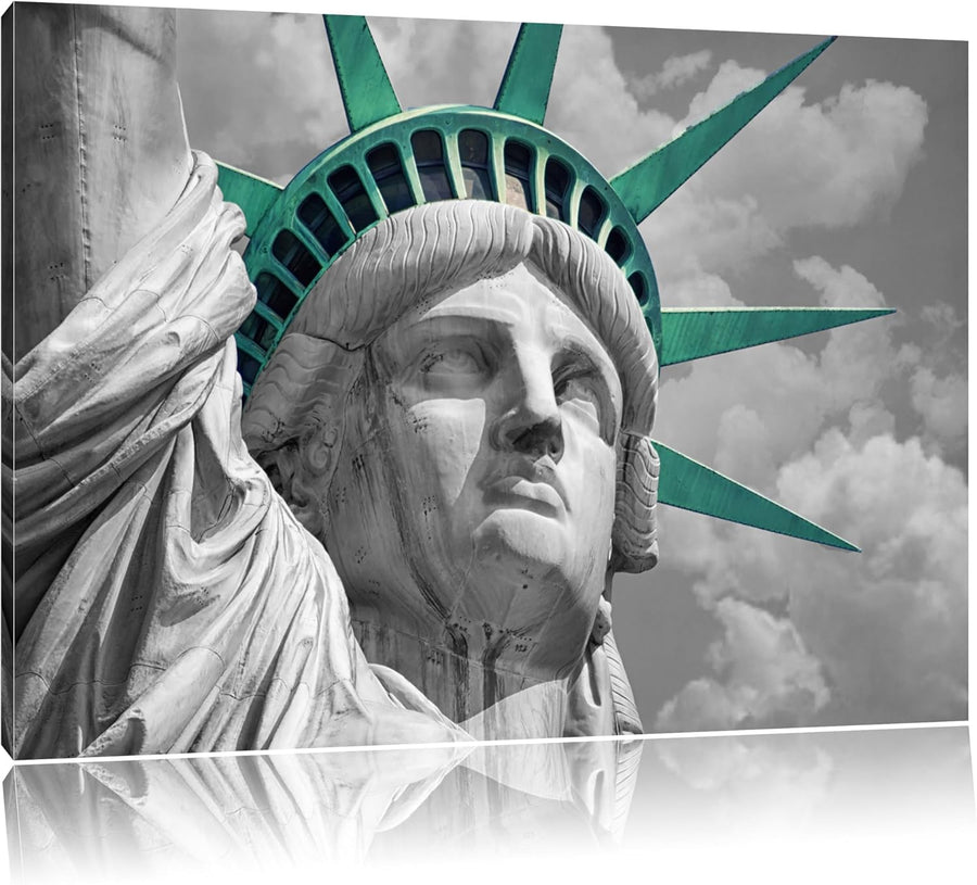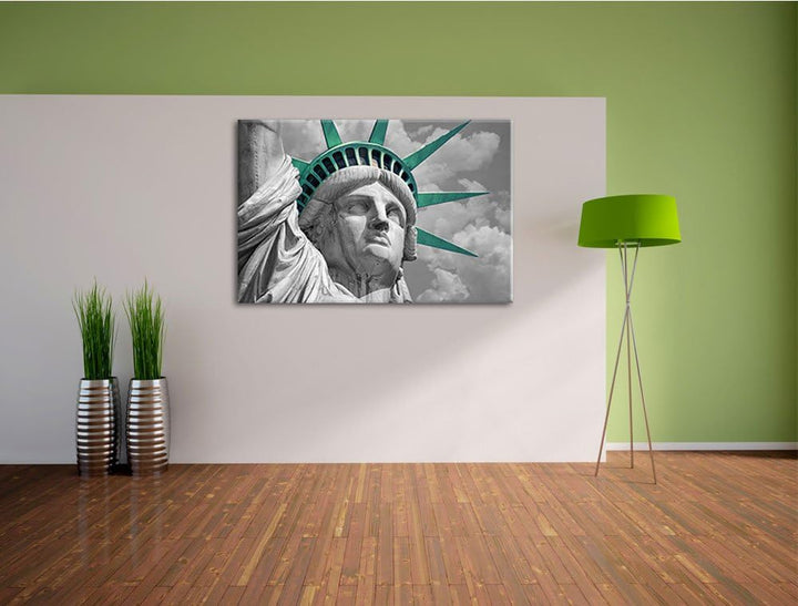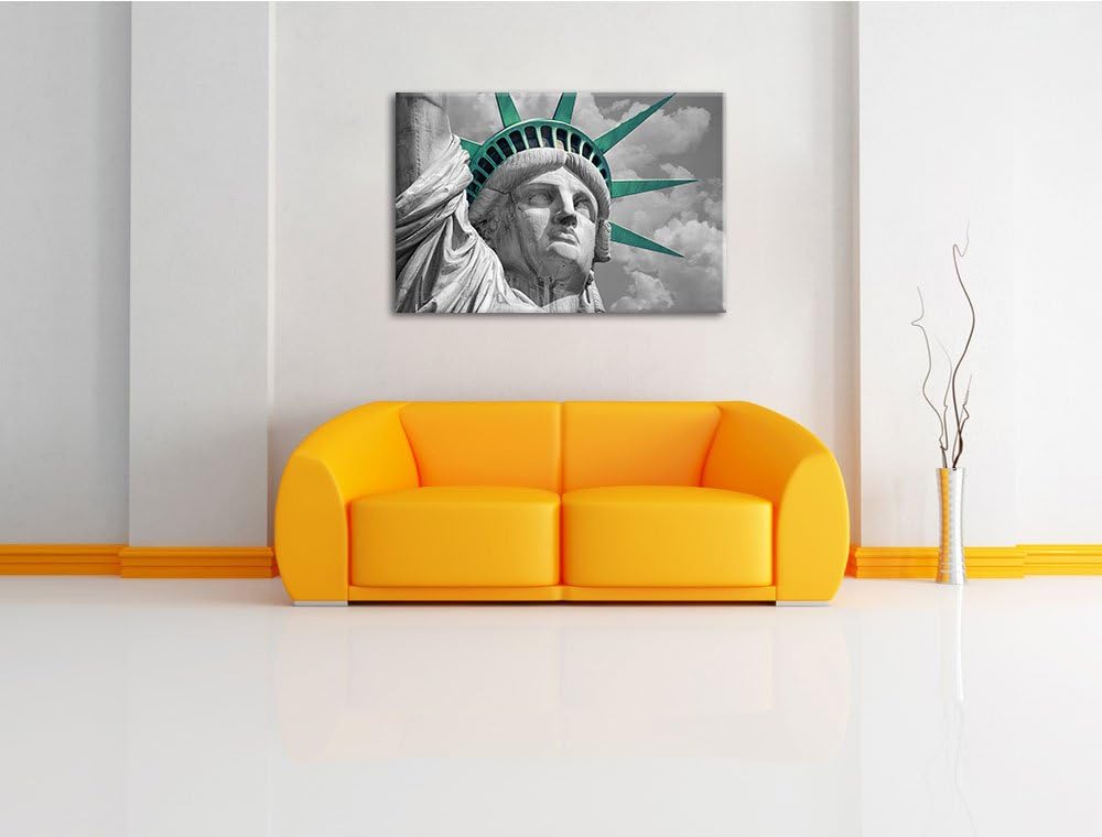 eindrucksvolle Freiheitsstatue schwarz/weiss Format: 100x70 auf Leinwand, XXL riesige Bilder fertig