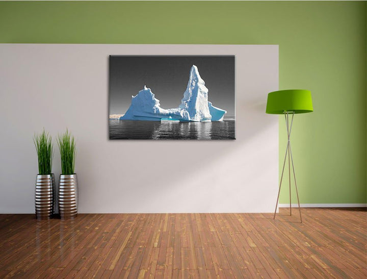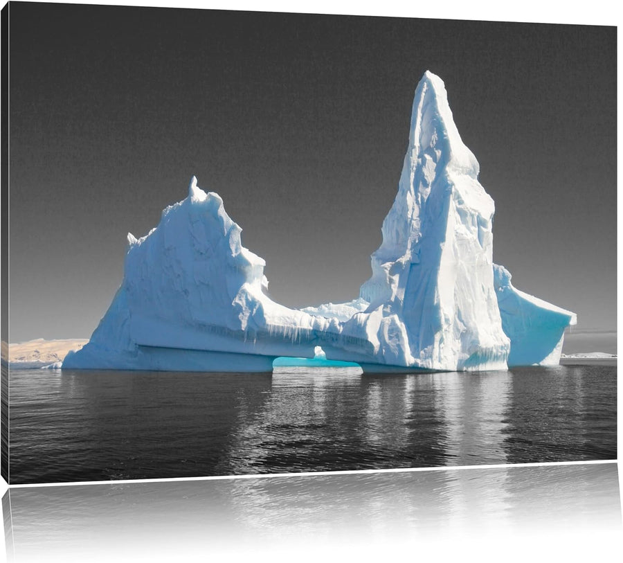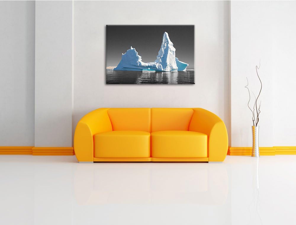 eindrucksvoller Eisberg schwarz/weiss Format: 100x70 auf Leinwand, XXL riesige Bilder fertig gerahmt