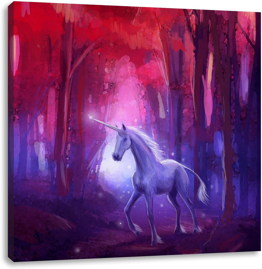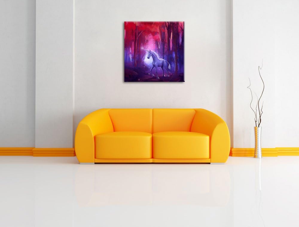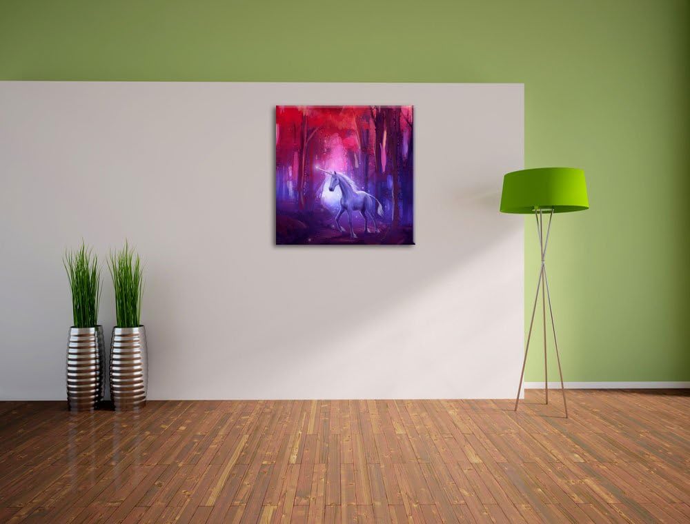 Einhorn im Zauberwald, Format: 70x70 auf Leinwand, XXL riesige Bilder fertig gerahmt mit Keilrahmen,