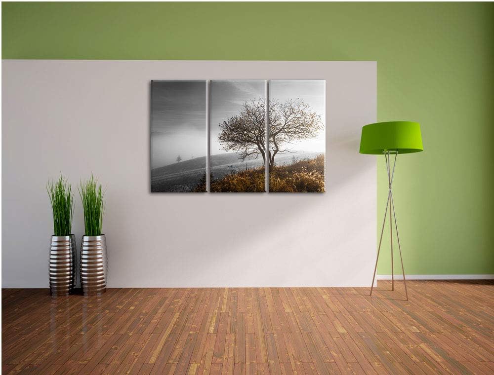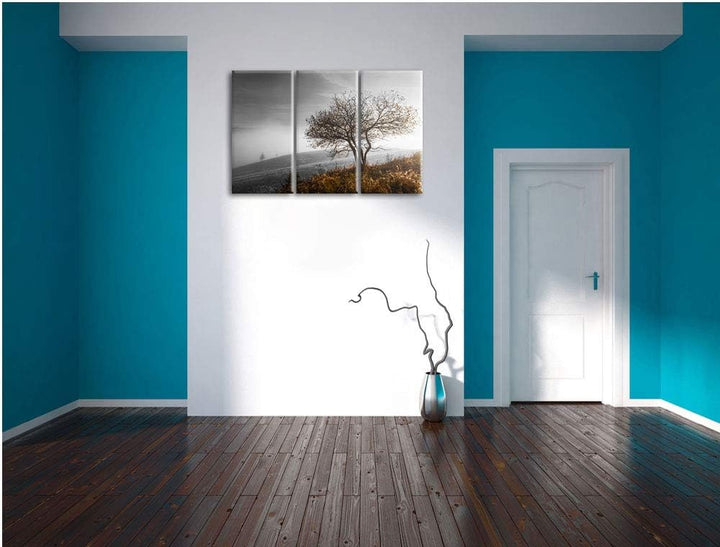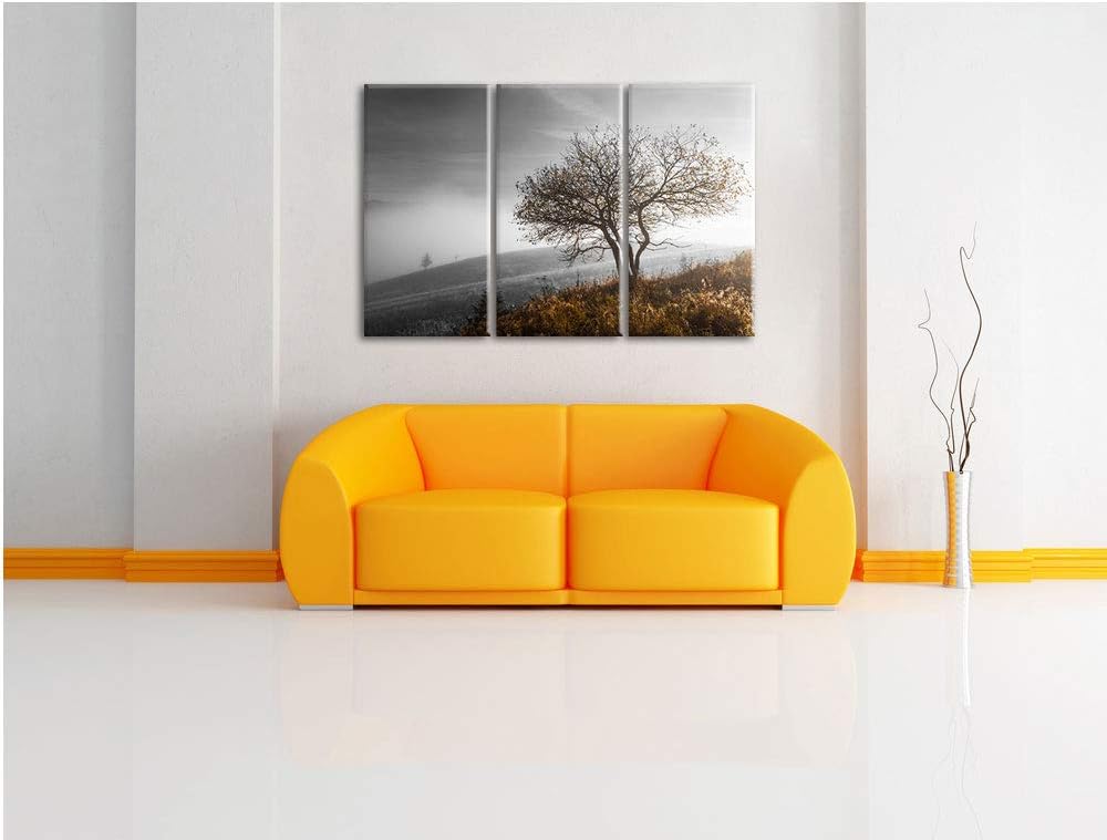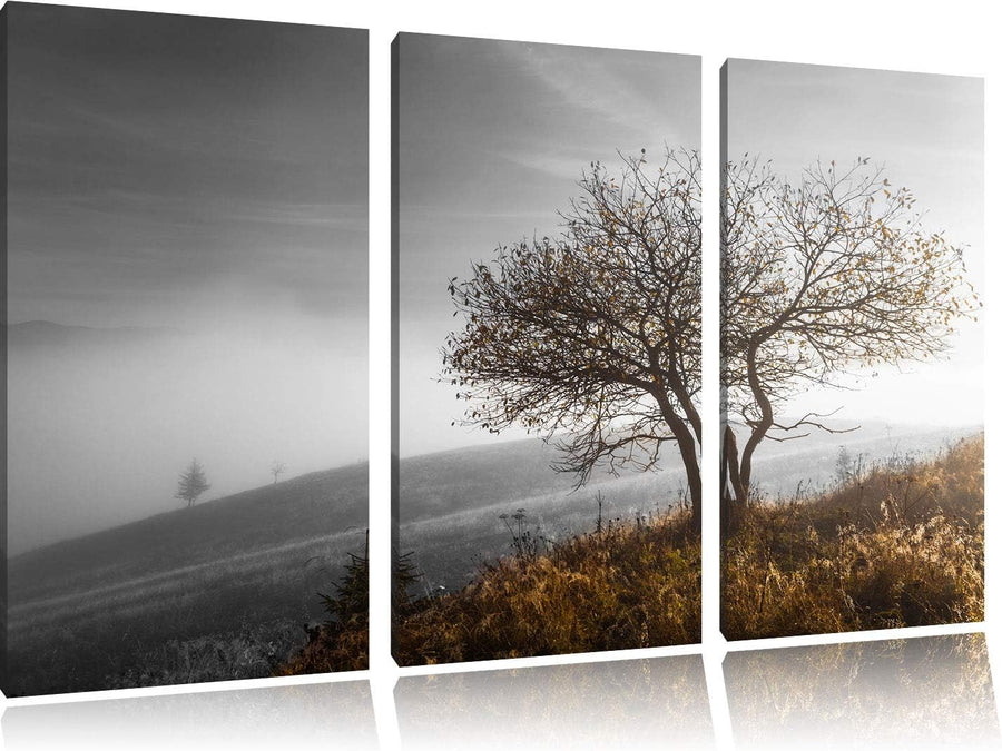 Einsamer Baum auf Berg schwarz/weiss 3-Teiler Leinwandbild 120x80 Bild auf Leinwand, XXL riesige Bil