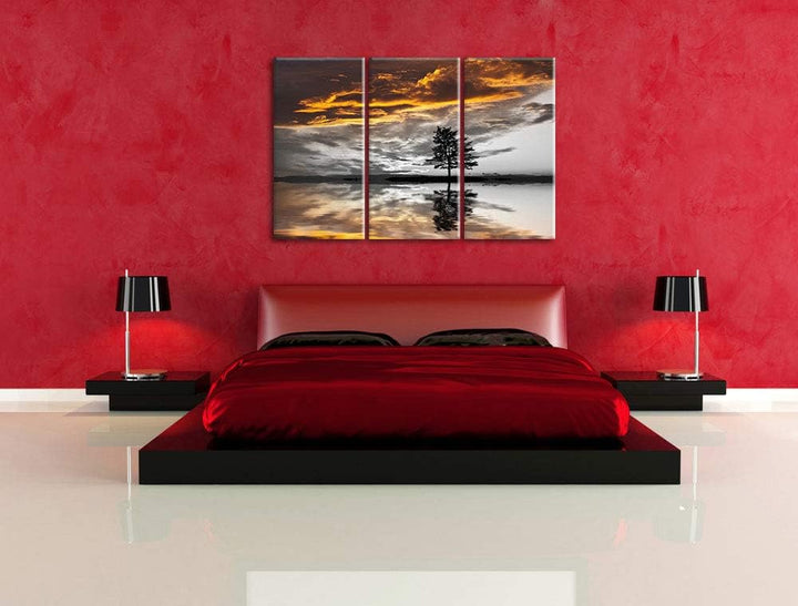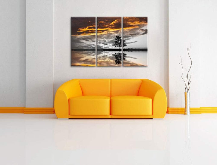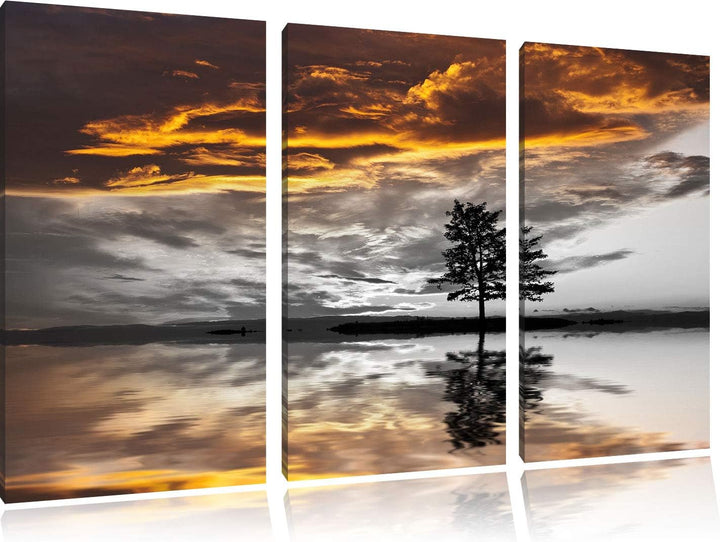 einsamer Baum auf Wiese schwarz/weiss 3-Teiler Leinwandbild 120x80 Bild auf Leinwand, XXL riesige Bi