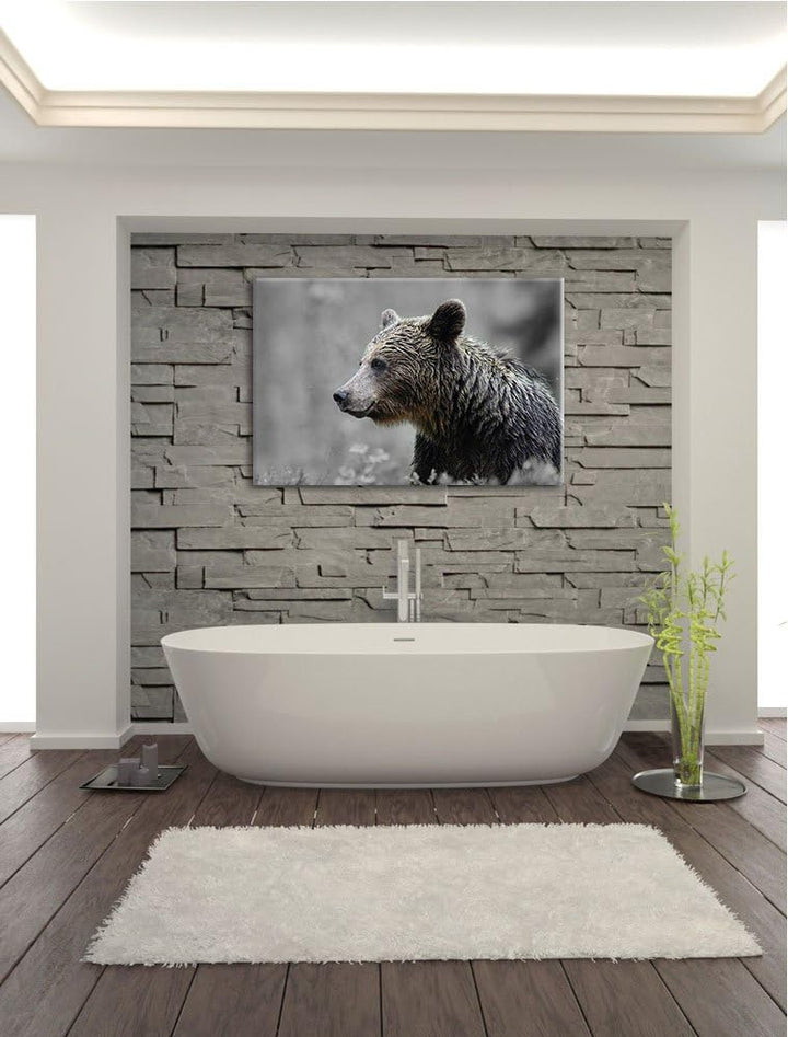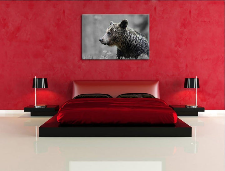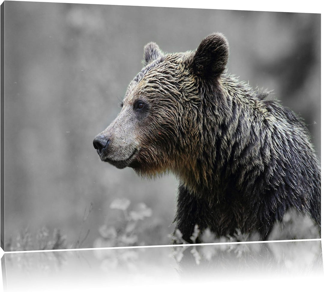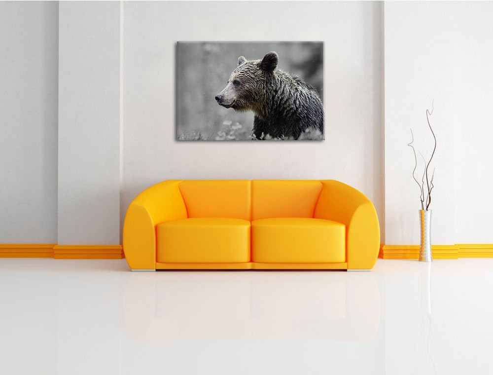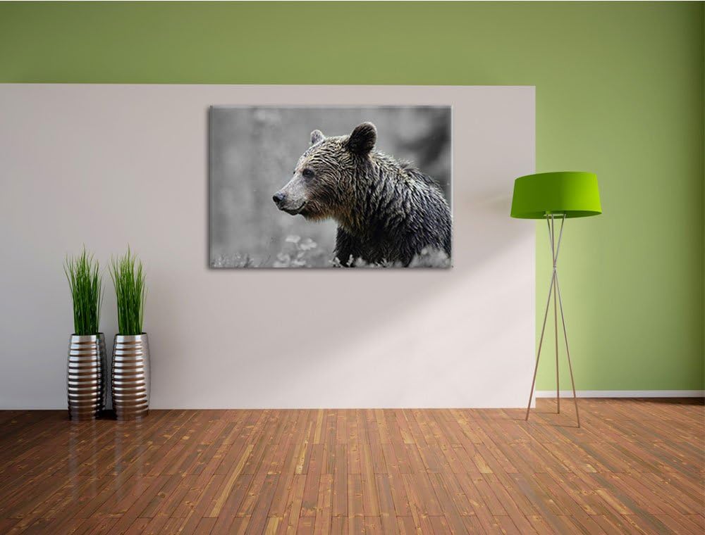 einsamer Bär im Wald schwarz/weiss Format: 100x70 auf Leinwand, XXL riesige Bilder fertig gerahmt mi
