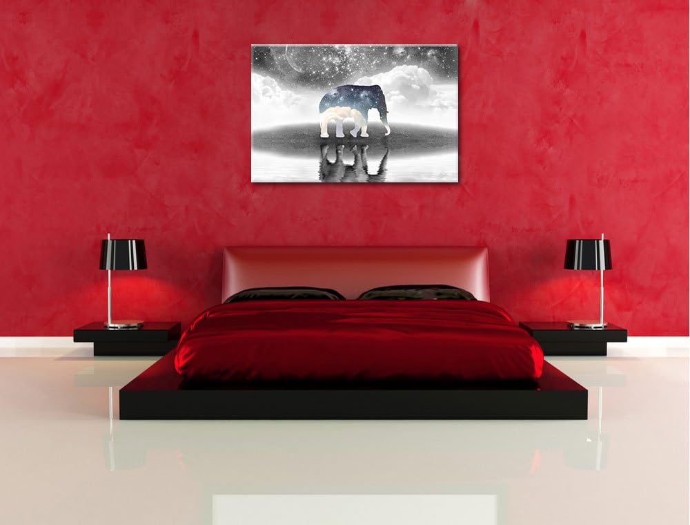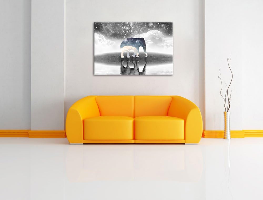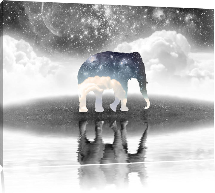 Einsamer Elefant schwarz/weiss Format: 100x70 auf Leinwand, XXL riesige Bilder fertig gerahmt mit Ke