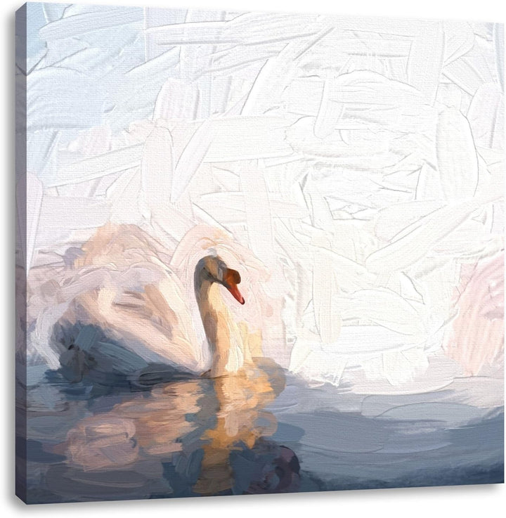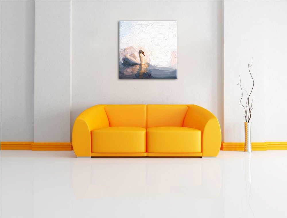 einsamer Schwan auf See, Format: 70x70 auf Leinwand, XXL riesige Bilder fertig gerahmt mit Keilrahme