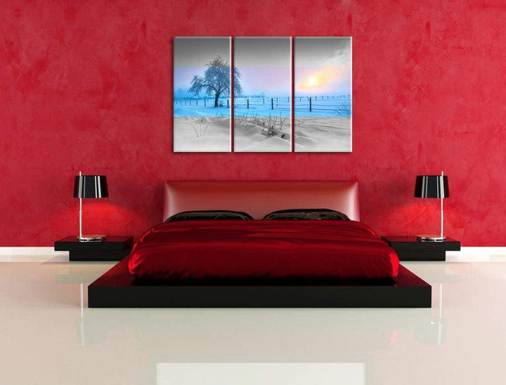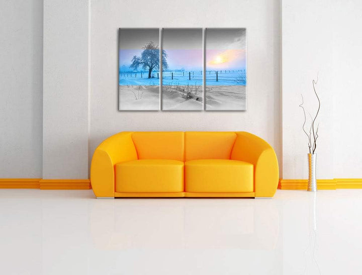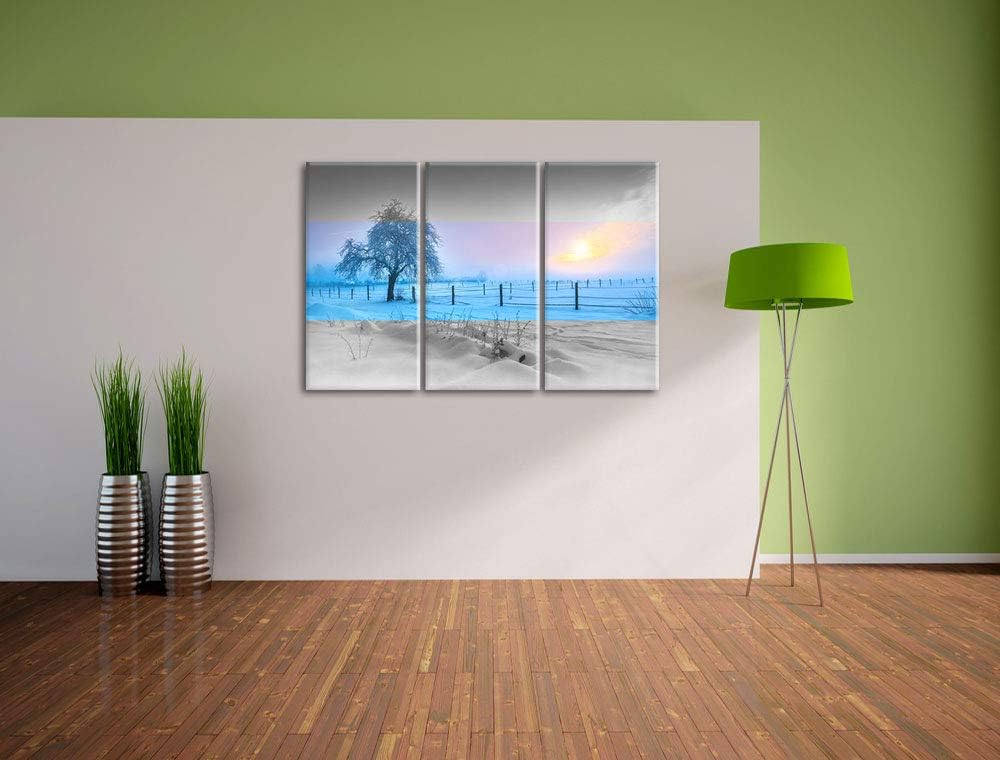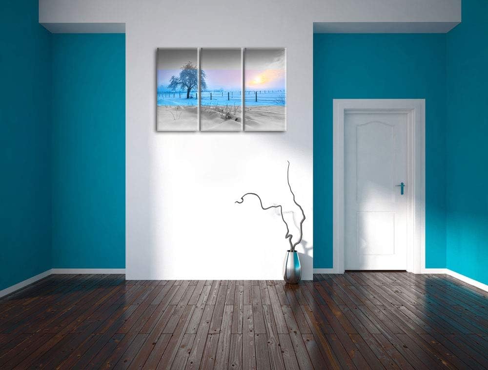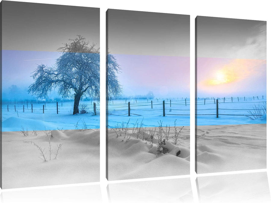 Einsamer Baum in Winterlandschaft schwarz/weiss 3-Teiler Leinwandbild 120x80 Bild auf Leinwand, XXL