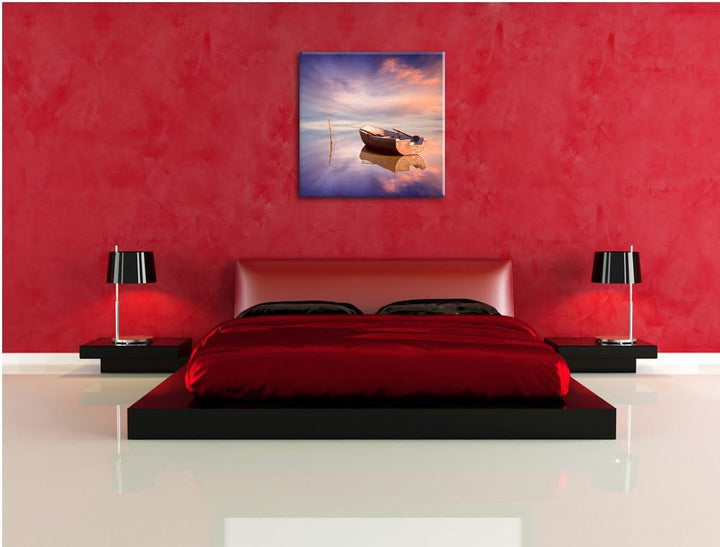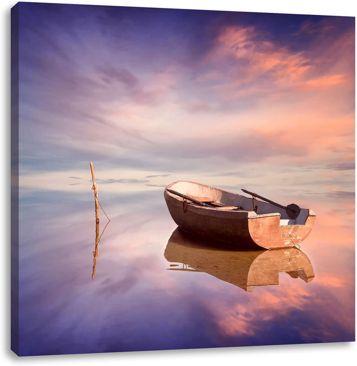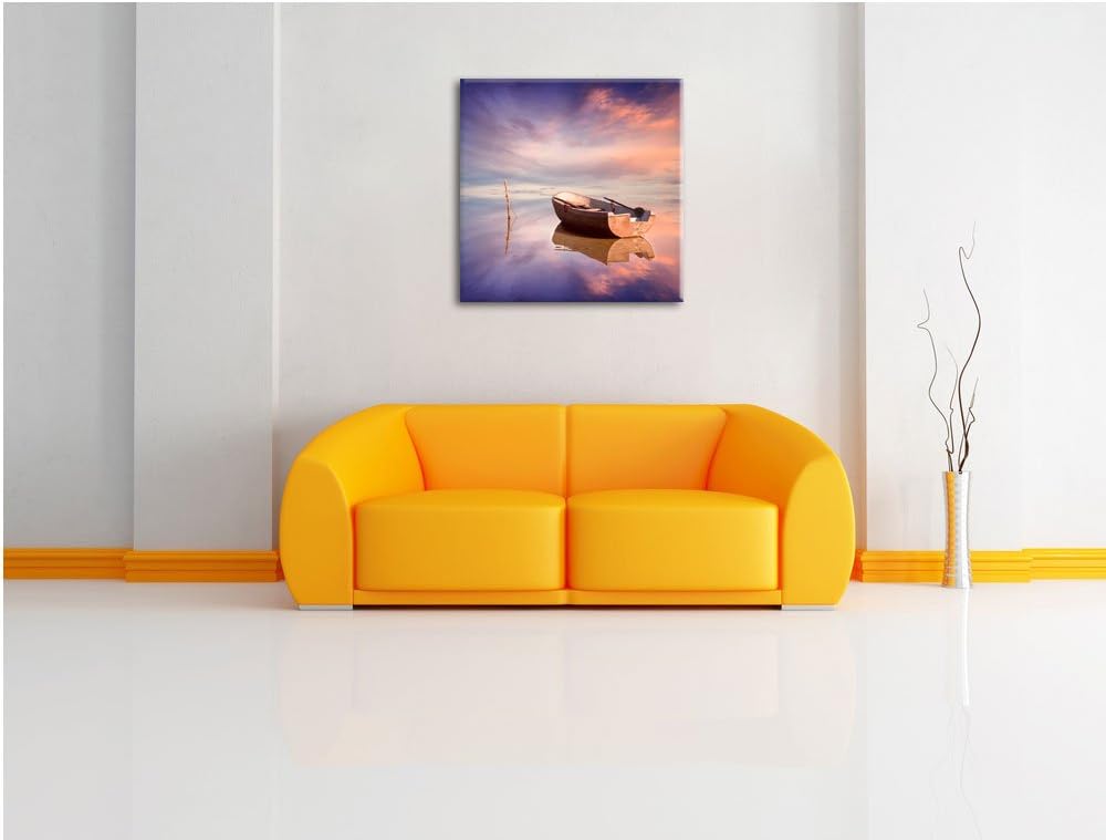 Einsames Boot auf See, Format: 70x70 auf Leinwand, XXL riesige Bilder fertig gerahmt mit Keilrahmen,