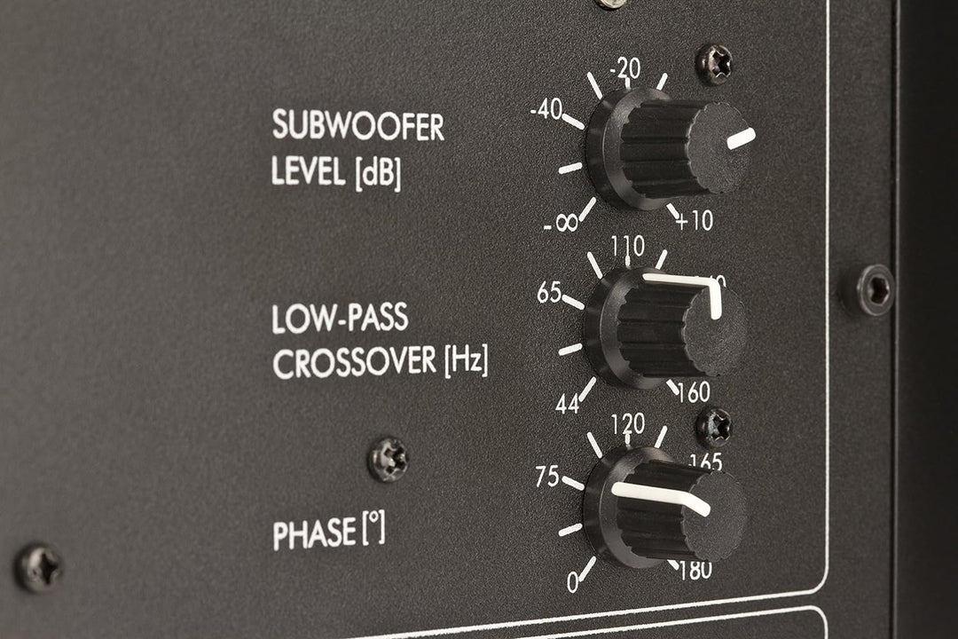 - Höhe x Breite x Tiefe 356 x 300 x 315 mm; obere Grenzfrequenz 44 ... 160 Hz, wählbar; Eingangsempfindlichkeit 2 x 70 Mv