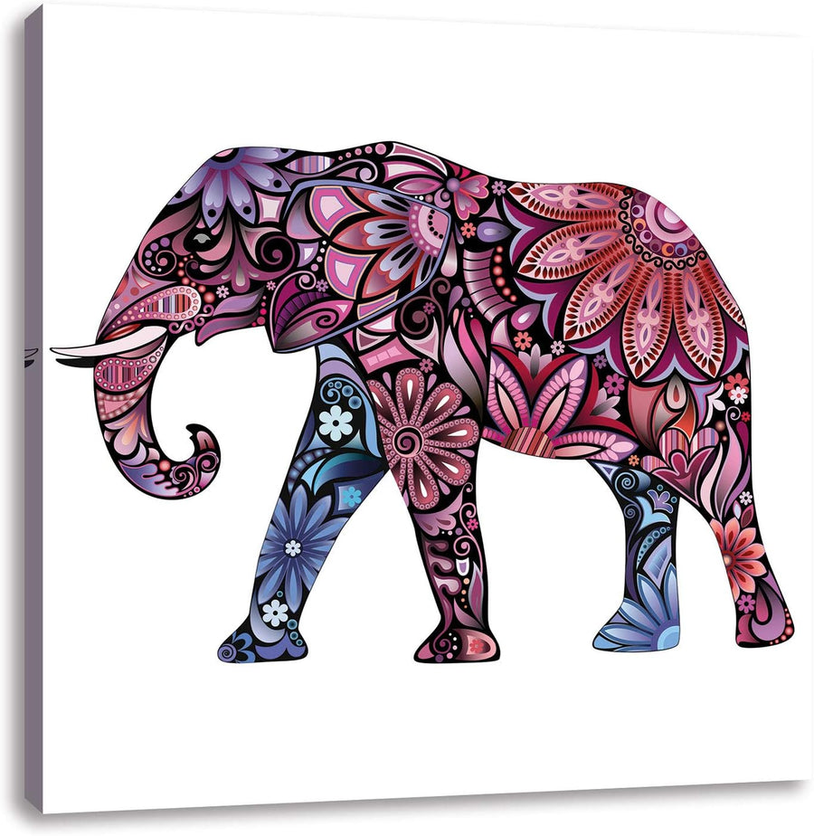 Elefant mit Ornamenten, Format: 70x70 auf Leinwand, XXL riesige Bilder fertig gerahmt mit Keilrahmen