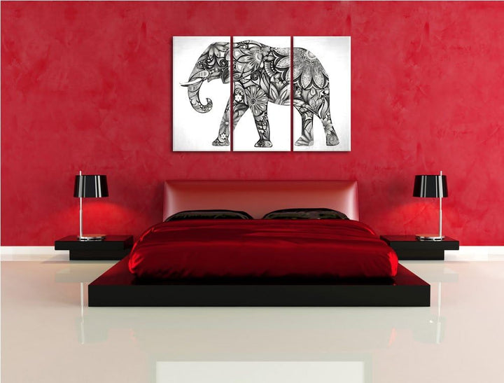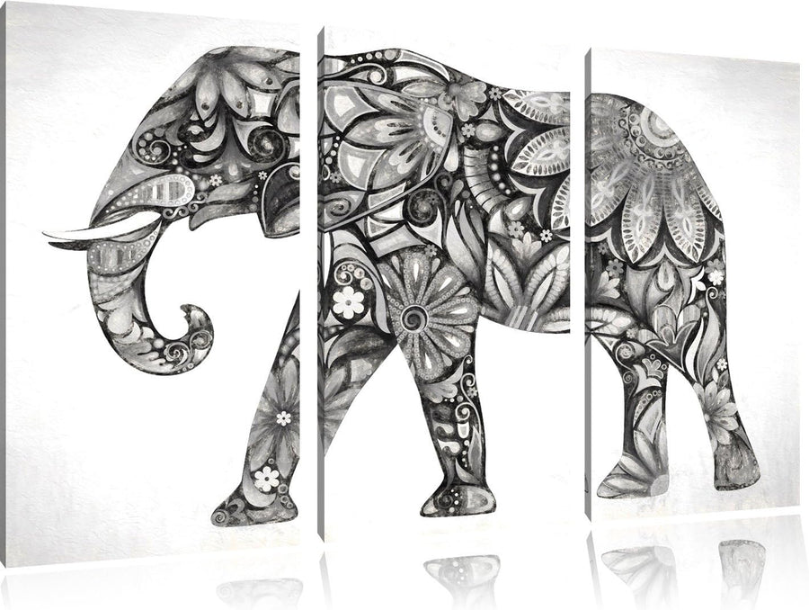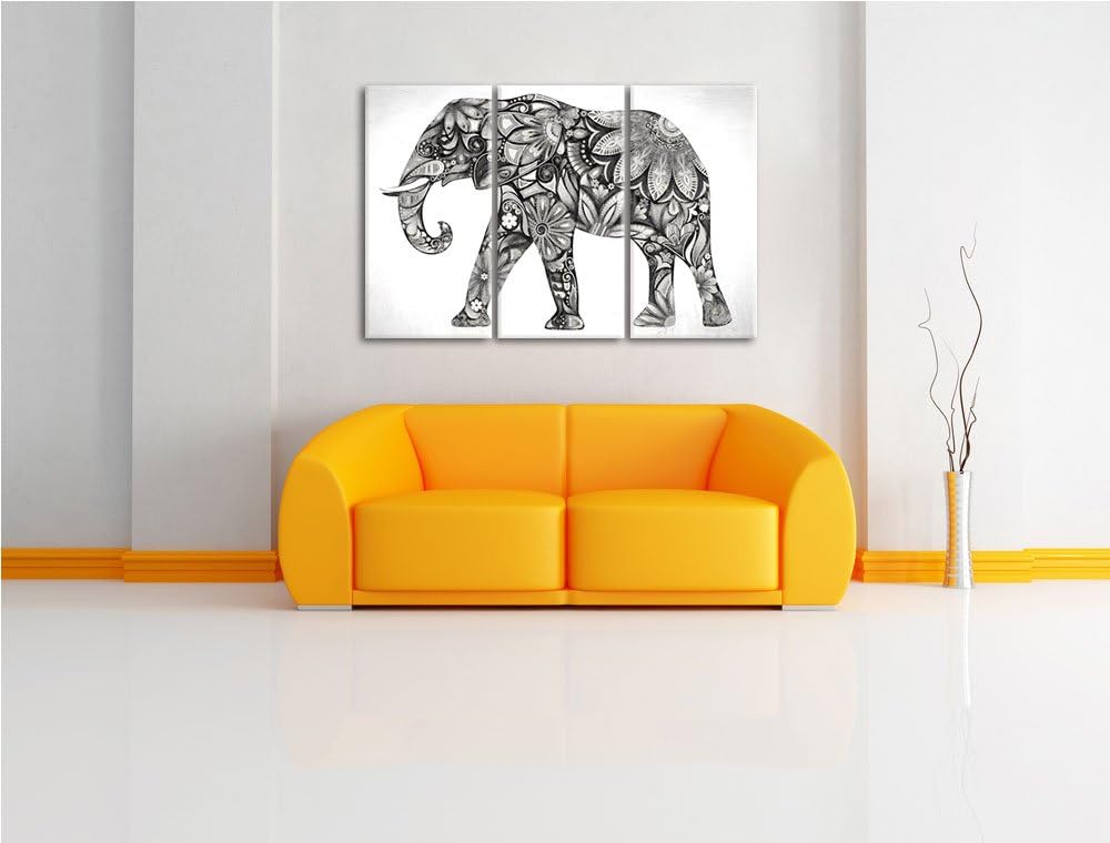 Elefant mit Ornamenten Spezial 3-Teiler Leinwandbild 120x80 Bild auf Leinwand, XXL riesige Bilder fe