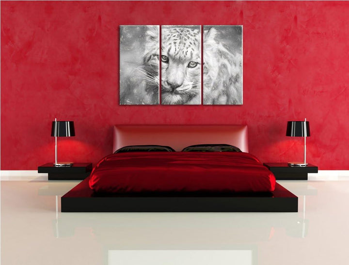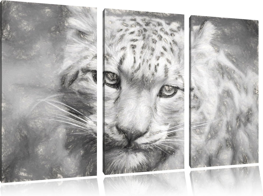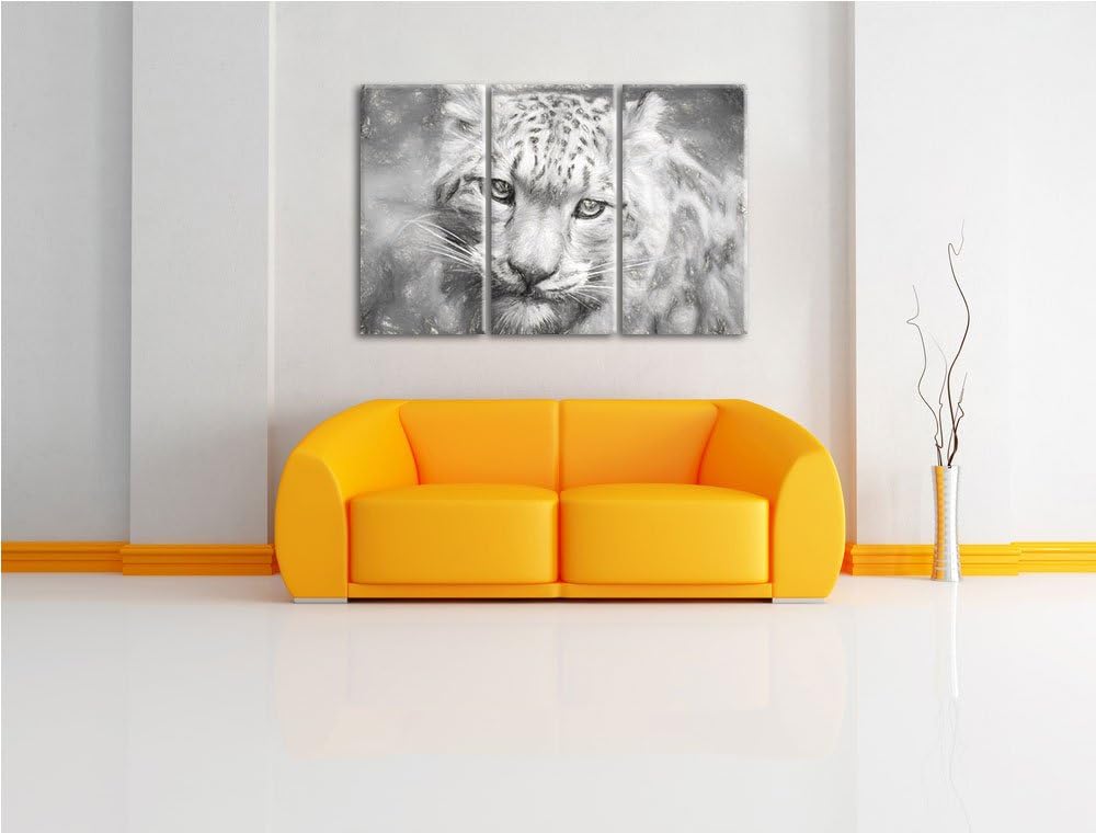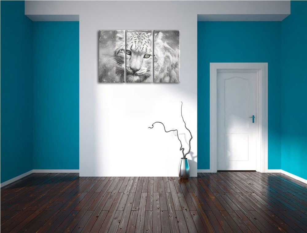 eleganter Schneeleopard Spezial 3-Teiler Leinwandbild 120x80 Bild auf Leinwand, XXL riesige Bilder f