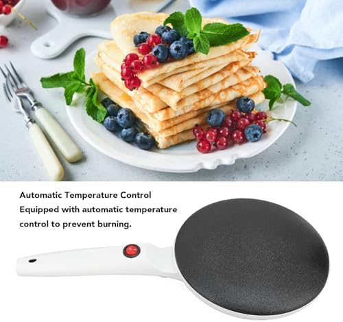 - Automatische Temperaturregelung: Unser elektrischer Crêpes-Maker verfügt über einen automatischen Temperaturregler, um Verbrennungen zu verhindern. Die Hochleistungsheizung funktioniert mit einem Ein-Tasten-Schalter und zeigt an, wann die Oberfläche