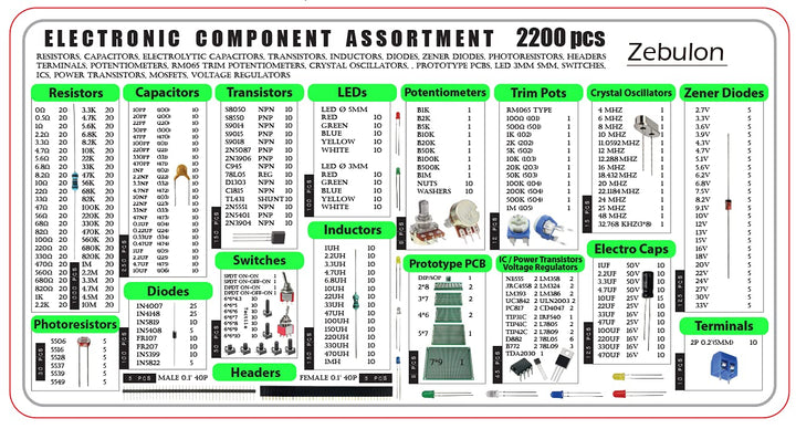 - Enthält 2200 Stück verschiedene nützliche Elektrotechnik Bauteile und Komponenten