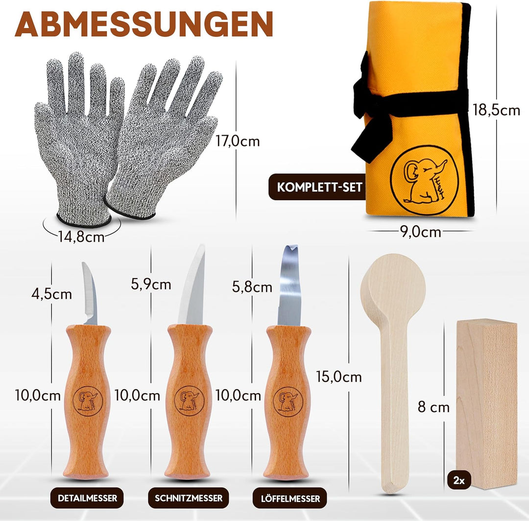 - ✅ HOCHWERTIGE QUALITÄT - Die Schnitz - Werkzeuge haben einen ergonomischen Buchenholzgriff. Die Holzverarbeitung – Holzbearbeitung ist im kindlichen Design gehalten. Die Klinge besteht aus robustem, rostfreiem Stahl - Edelstahl und die Messerspitze