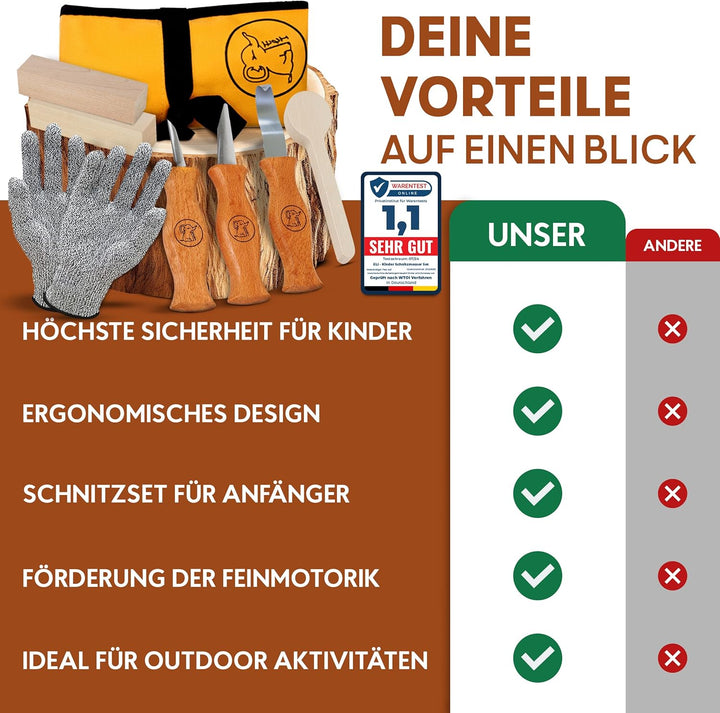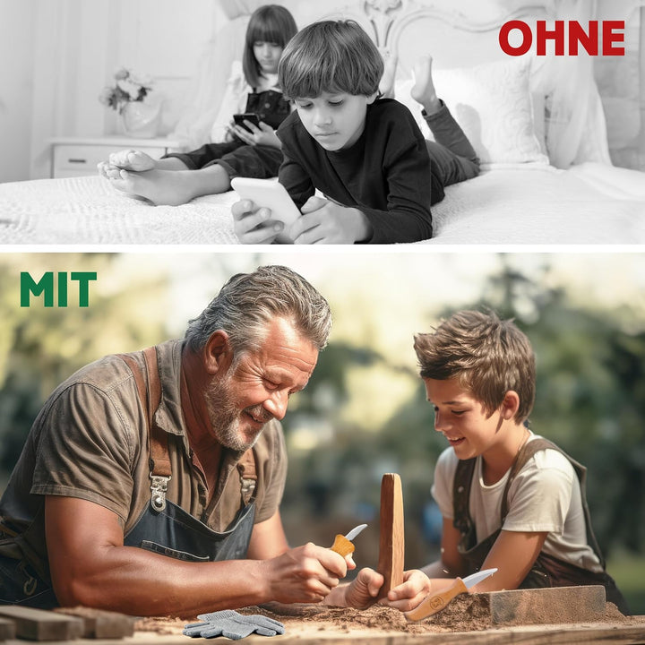 - ✅ FEINMOTORIK - Das Komplett Set für Kinder fördert die handwerklichen Fähigkeiten und die Handwerkskunst des Schnitzens. Dabei werden Kreativität, logisches Denken und Selbstbewusstsein gefördert. Durch die Freude am Schnitzen verbringt dein Kind