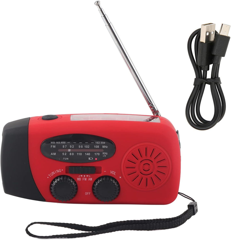 - 3 in 1 Wetterradio: AM / FM WB (NOAA) Wetterradio + leistungsstarke 3 LED-Taschenlampe + Handy-Ladegerät!