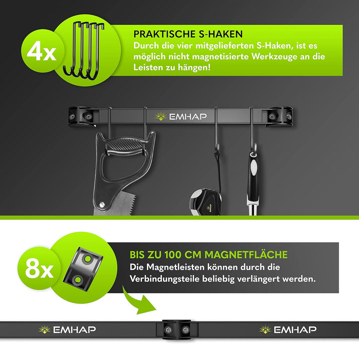 - โ ๐๐๐๐๐๐๐๐ ๐๐๐๐๐๐๐๐๐๐๐: Durch die Verbindungsteile kannst du beliebig deine Werkzeughalter zusammenfรผhren und an der Wand montieren. Bis zu insgesamt 1000mm Magnetflรคche.
