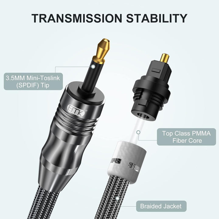 - Das Mini-Toslink-Kabel verfügt über 24 K vergoldete Stecker, ist korrosionsbeständig, reduziert Anlaufen und bietet maximalen Schutz für die Faserspitze.