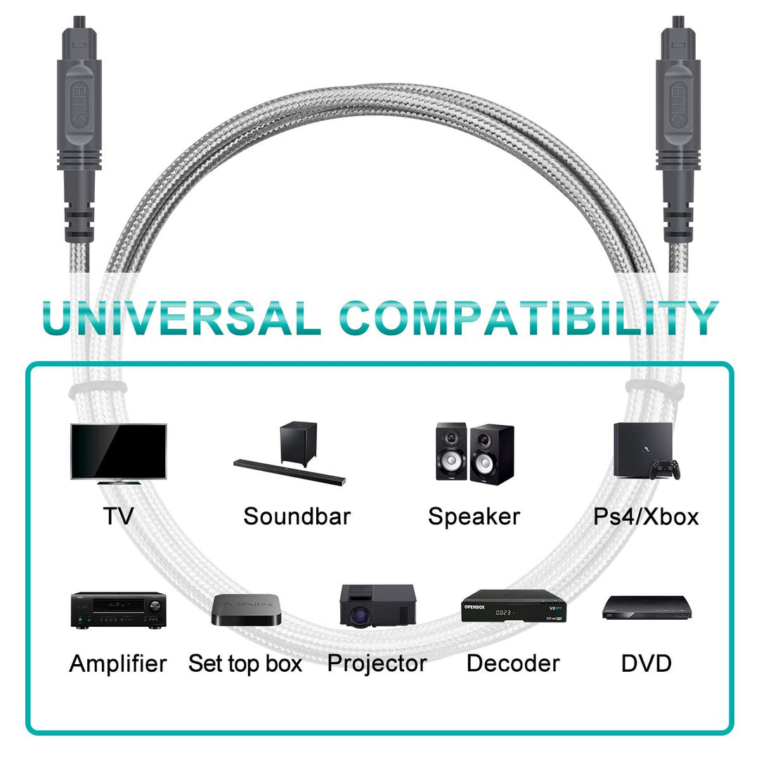 - Perfektes digitales optisches Audiokabel für Heimkino, Soundbar, TV, VD/CD-Player, Blu-ray-Player, Spielekonsole. Kompatibel mit Standard- und High-Definition-Geräten mit Toslink-Anschlüssen (S/PDIF, Optisch, Digital).
