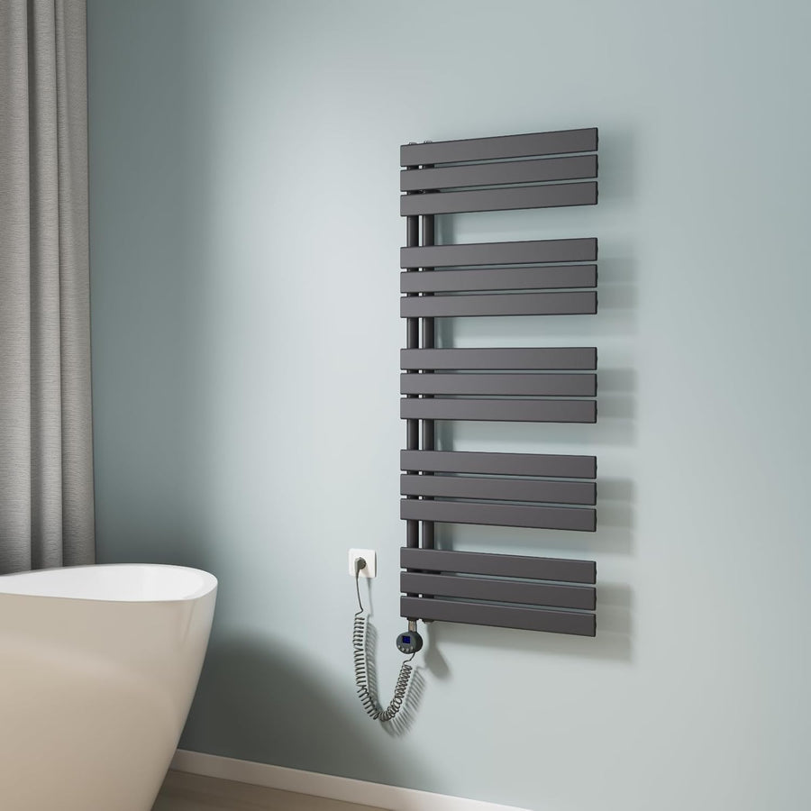- Einfache Installation: Der Handtuchheizkörper wird mit elektrische Heizstab vorinstalliert und mit Frostschutzmittel vorgefüllt geliefert. An die Wand hängen, einstecken und fertig.