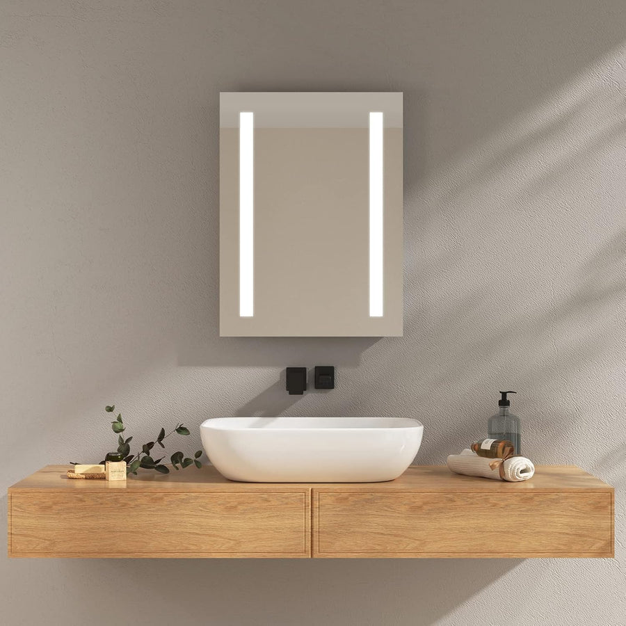 - 【LED Badspiegel】45x60cm, Vertical Installation.Badezimmerspiegel mit Druckknopfschalter und Antibeschlag.