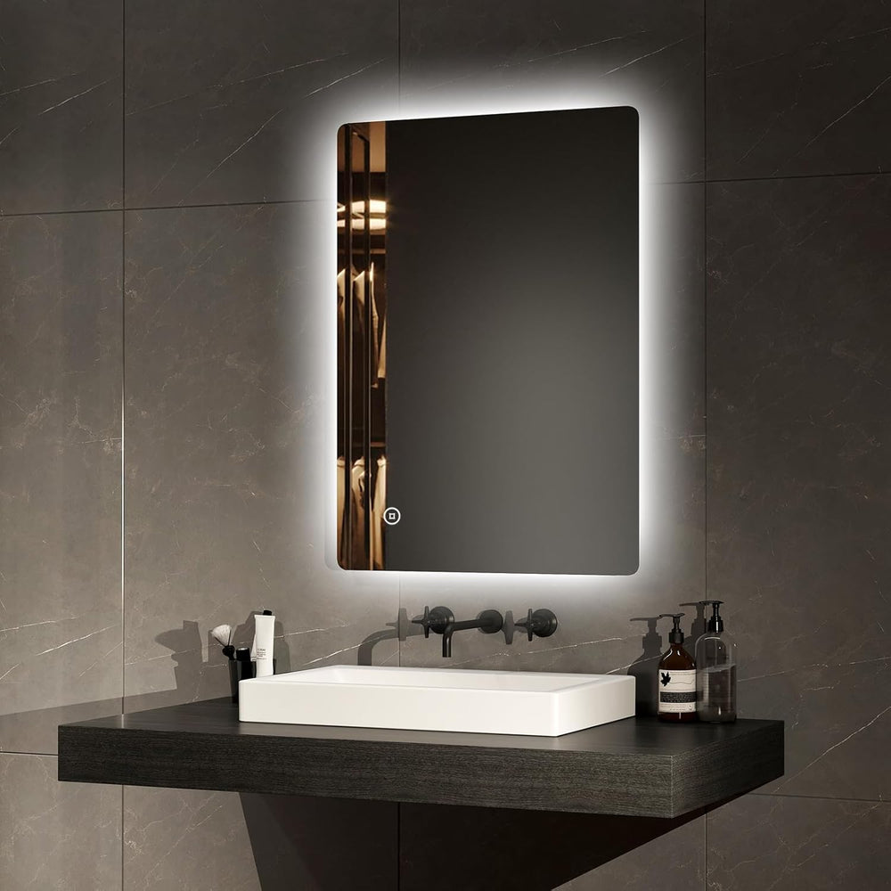 - 【Einstellbare Helligkeit】Drücken Sie lange auf die Spiegeltaste, um die Helligkeit einzustellen(10%-100%) ,6500K kaltweisses Licht. EMKE Badspiegel mit Beleuchtung hat eine Speicherfunktion, die Ihre letzte Lichteinstellung merkt.
