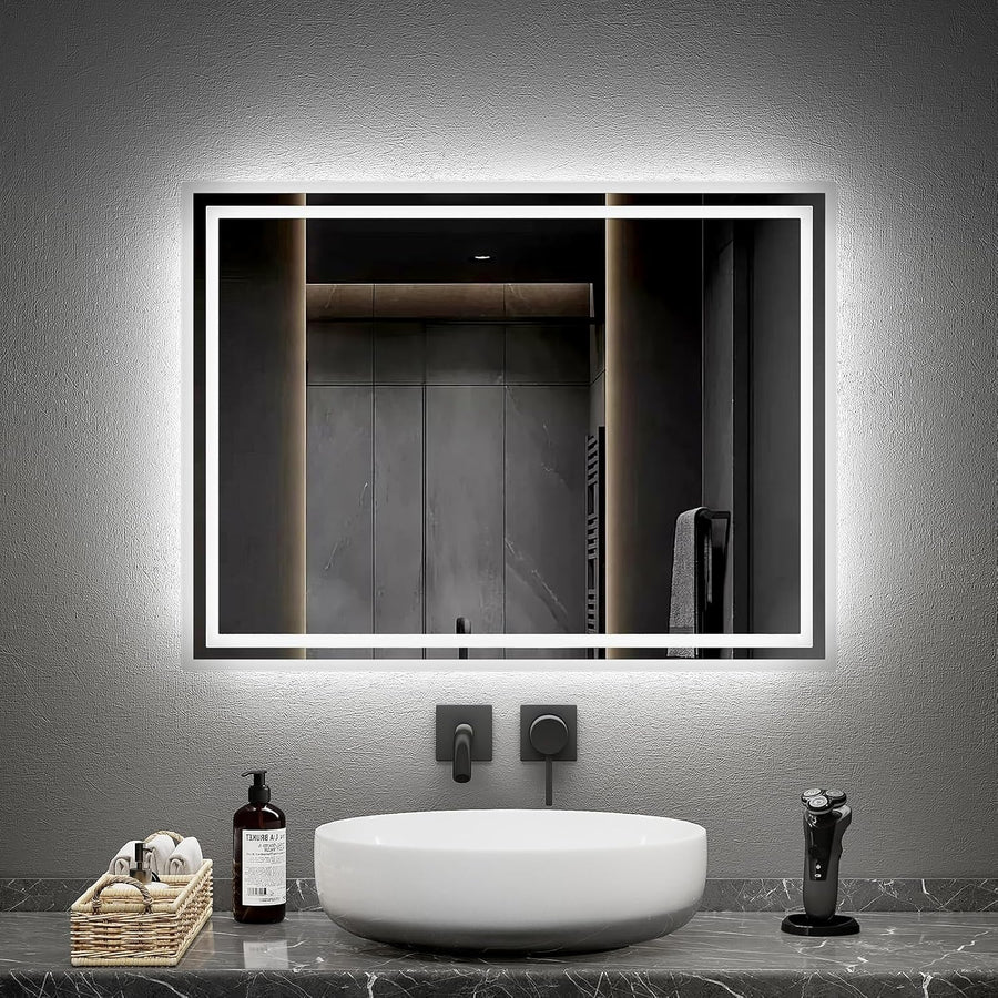 - 【Badspiegel mit Beleuchtung】Hinterleuchtet Spiegel 60x80/80x60cm, kann horizontal oder vertikal aufgehängt werden. Mit Knopfschalter, 2 Lichtfarben Warmweiss/Kaltweiss, separater Anti-Beschlag-Taste, energiesparend und IP44 wasserdicht.