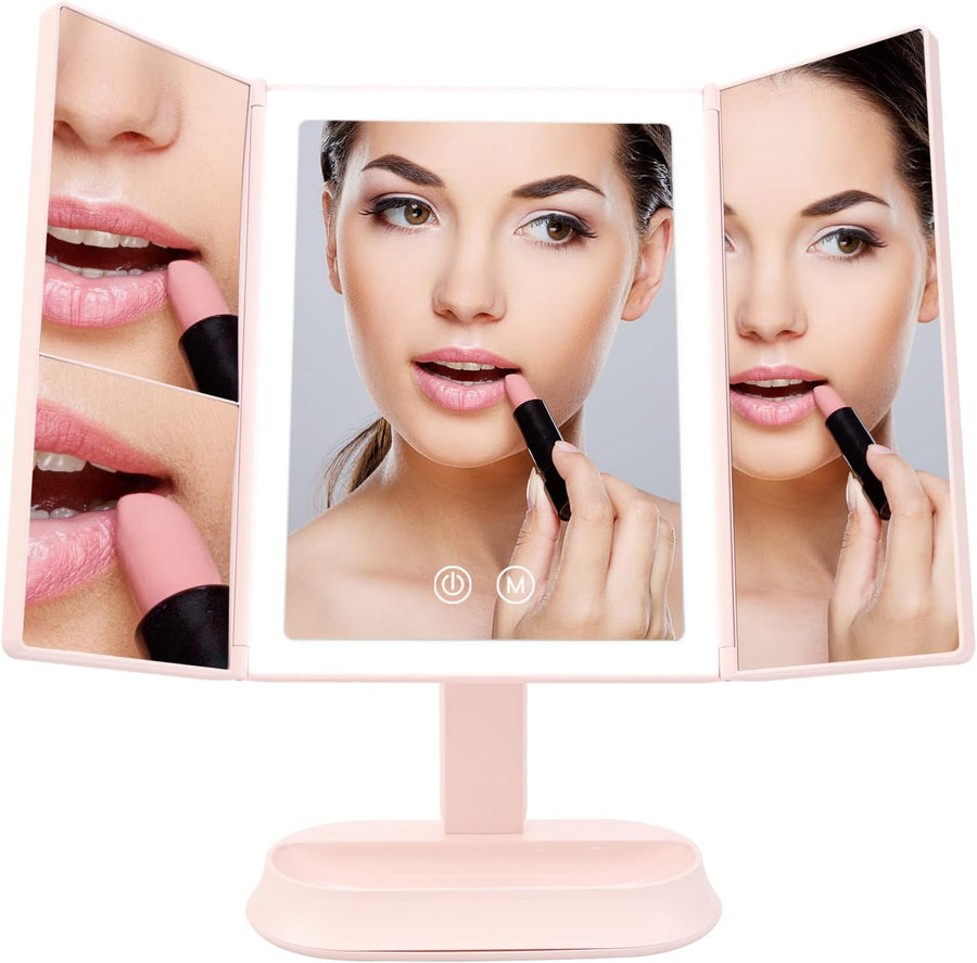 - 【Multifunktionaler Schminkspiegel】Der spiegel mit licht ist faltbar, und leicht zu tragen, kann sich um Gesichts-Make-up kümmern, das untere Chassis kann zur Aufbewahrung kleiner Gegenstände verwendet werden, einfach zu bedienen. Es ist eine gute