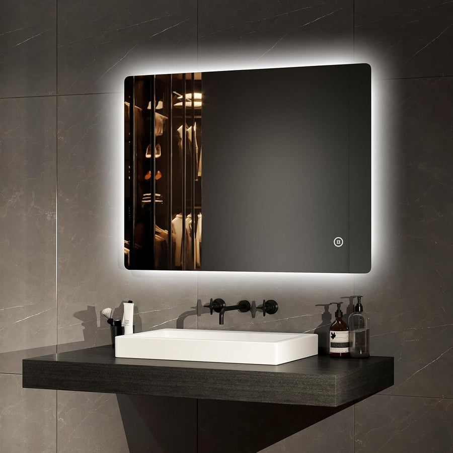 EMKE Badspiegel mit Beleuchtung 80x60cm Einstellbare Helligkeit, Touchschalter, Speicherfunktion, 3