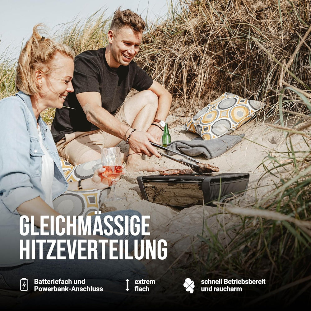 - extrem flache Bauweise (13,5 cm hoch) für angenehmes Grillen auf dem Tisch