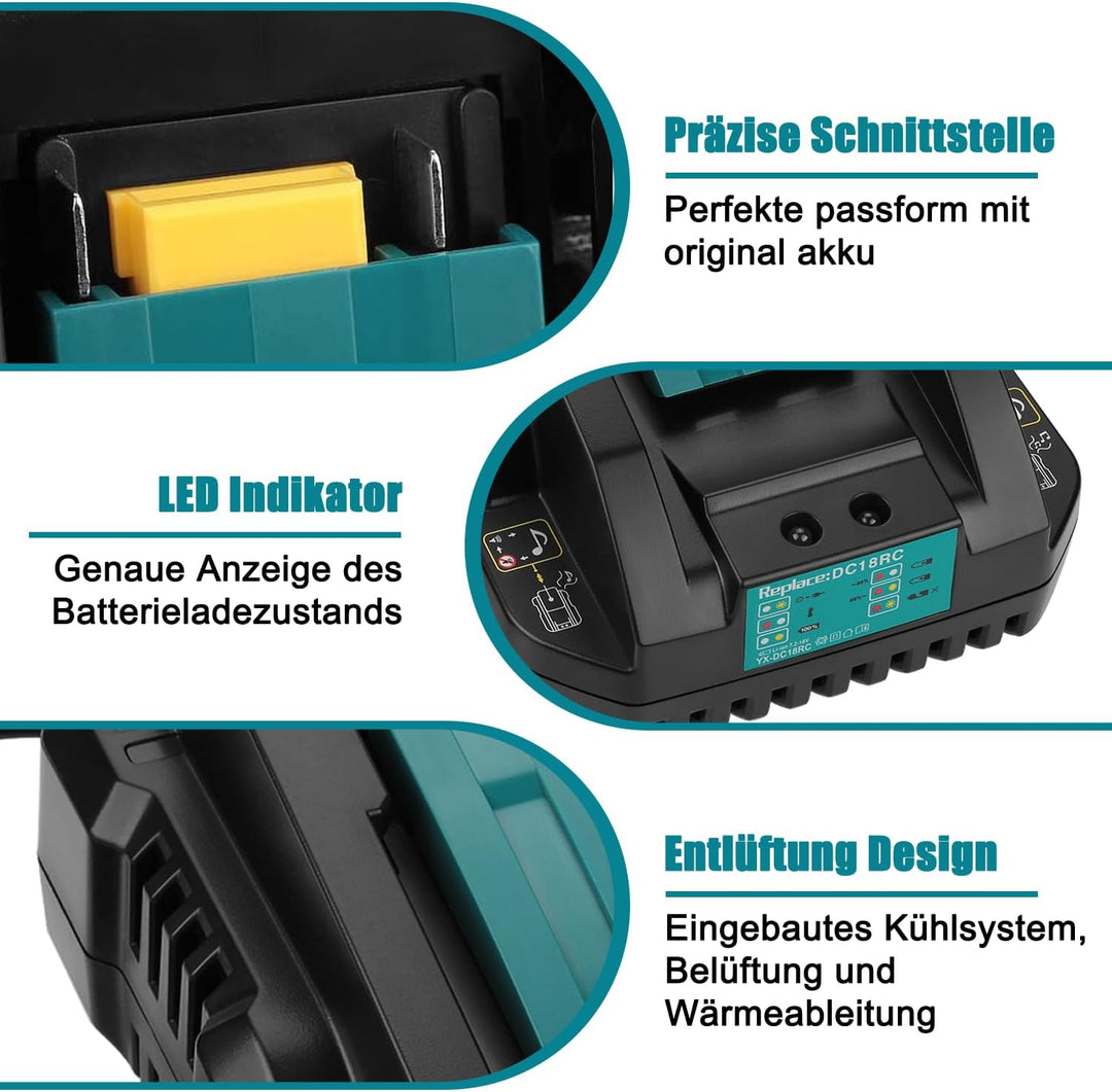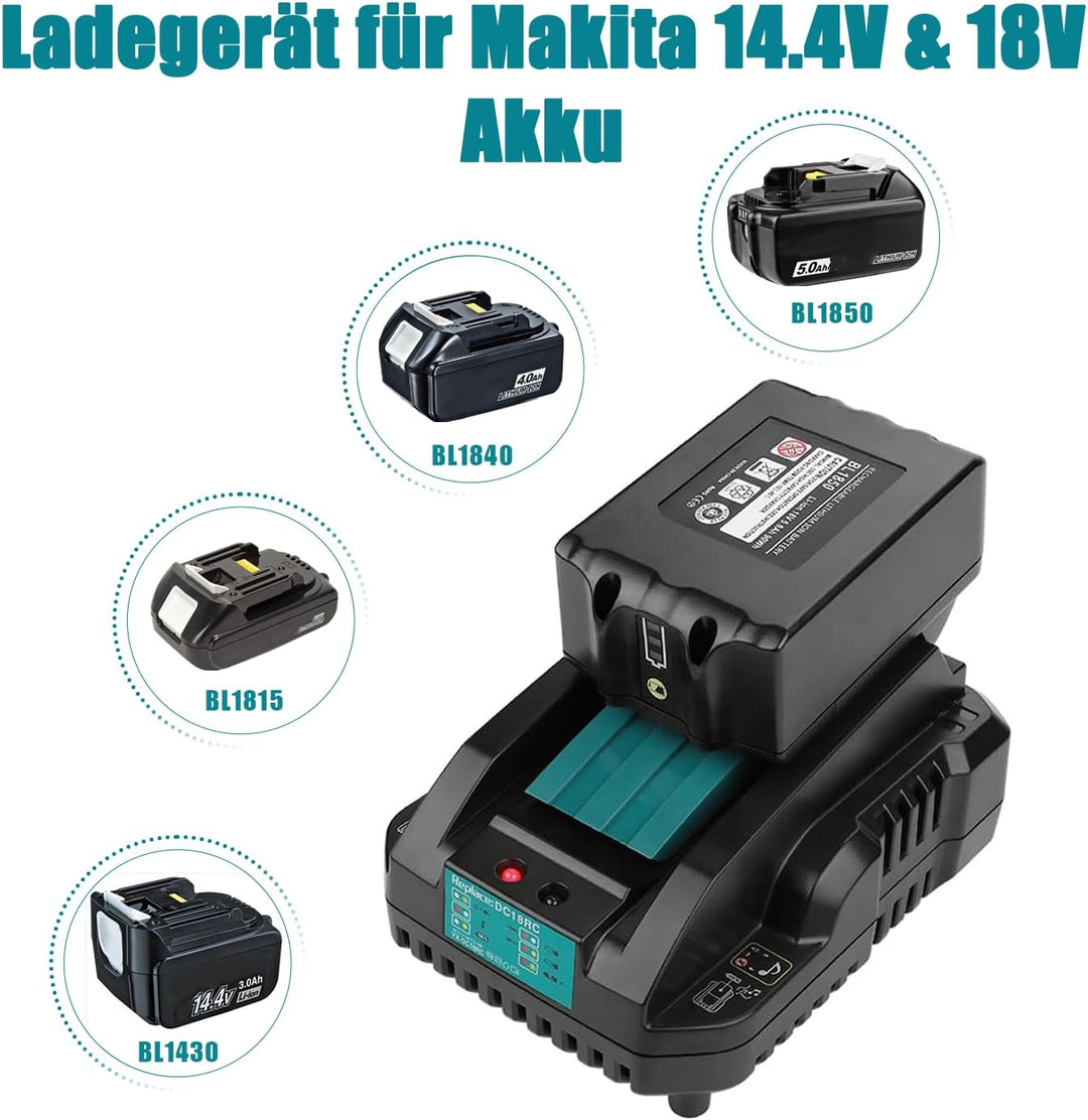- [Weitgehend Kompatibel] Kompatibel mit Makita 18v ladegerät DC18SF DC18RA DC18RC DC18RD und 14,4V~18V Akk BL1815 BL1820 BL1850 BL1415 BL1430 usw.