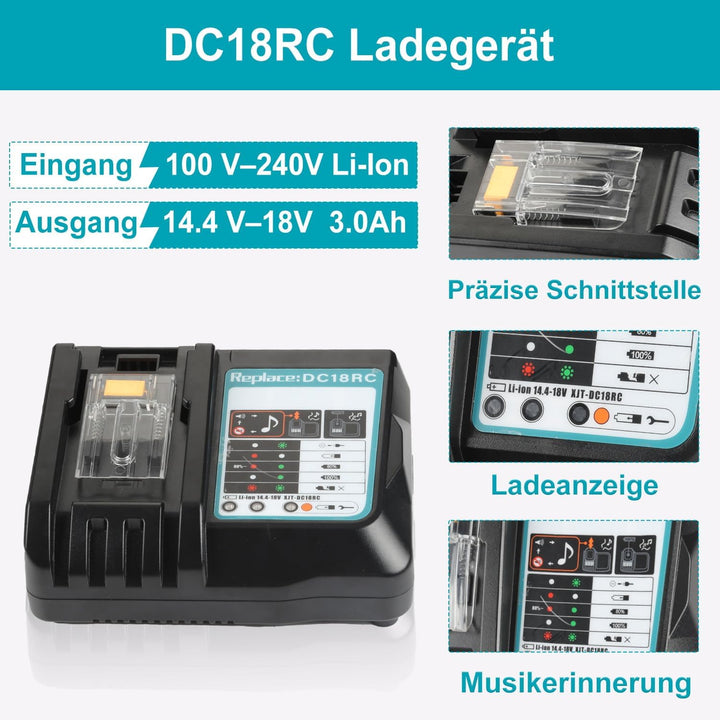 - Kompatibel mit Alle makita LXT akku BL1830 BL1840 BL1850 & Ladegerät DC18RA DC18RC. Haben die gleiche Leistung mit der Originalausrüstung